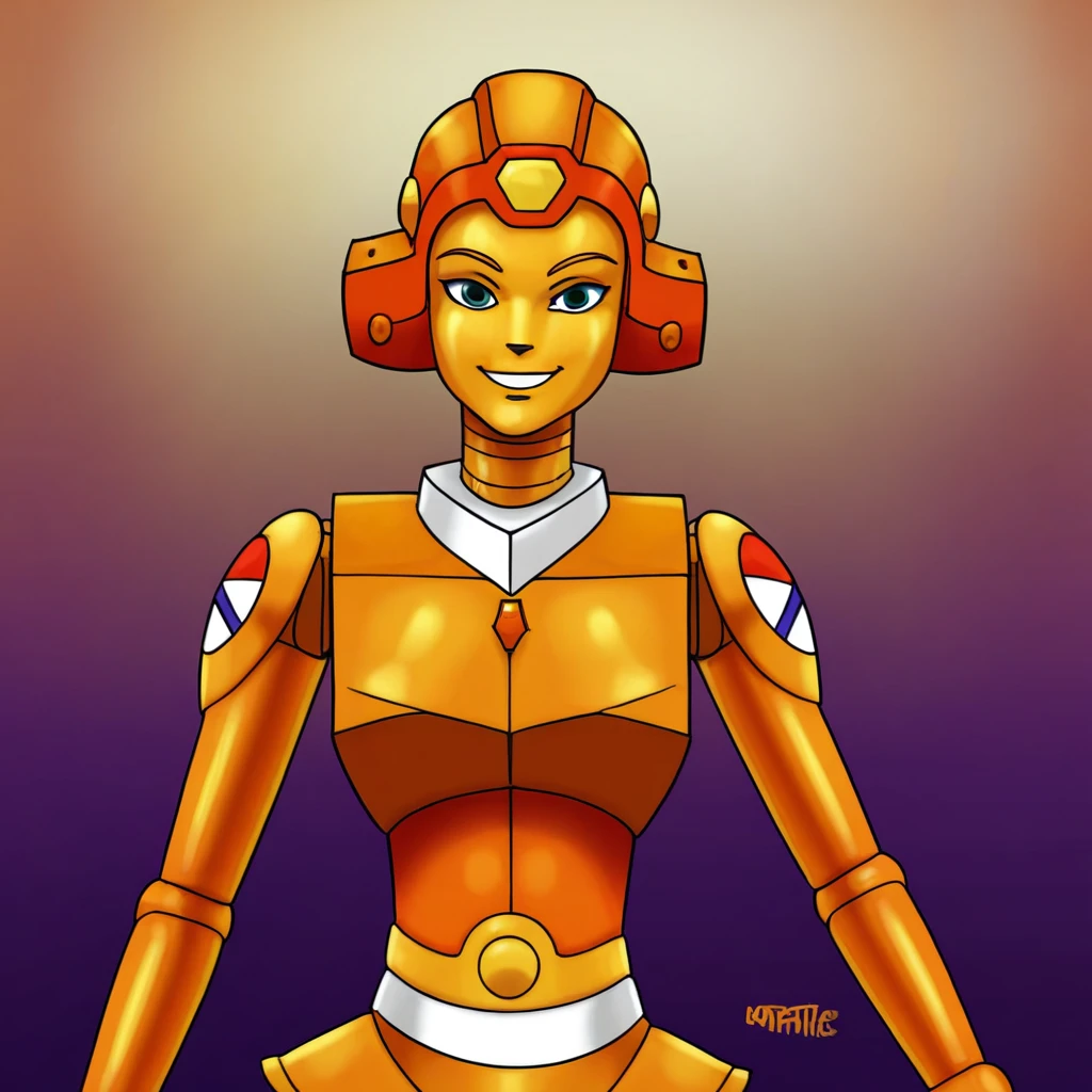 bo, orange skin, robot girl, helmet, 1girl, solo