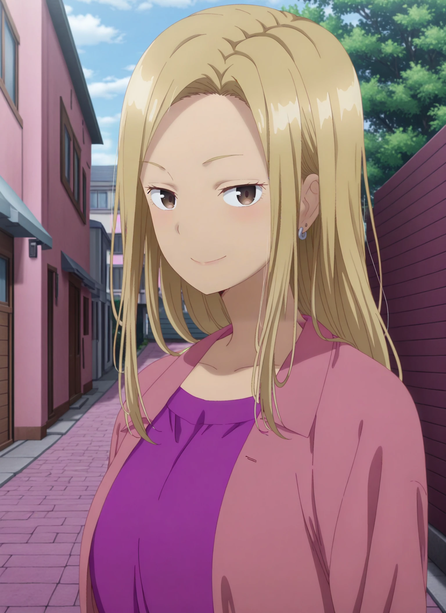 higehiro_asami, breast, blonde hair, gyaru, long hair, brown eyes,