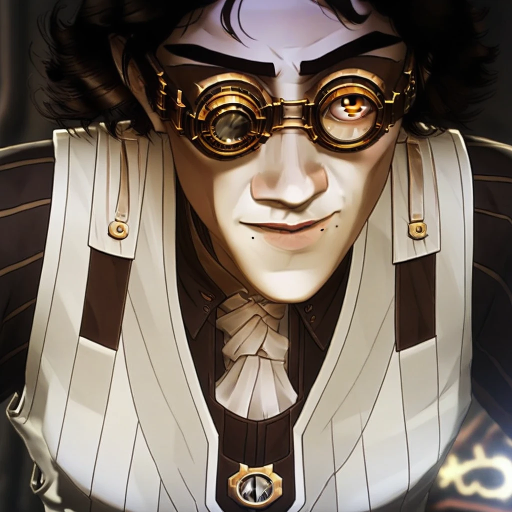 typically trigger words aren't needed, but to be accurate: brown hair, mole, amber eyes, white vest, red necktie,
