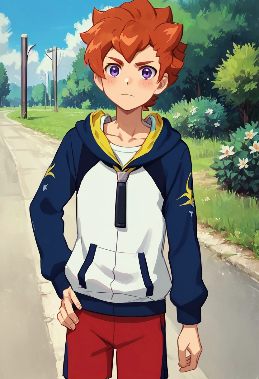 1boy,sena arata,ginger hair,spiky hair,purple eyes,
