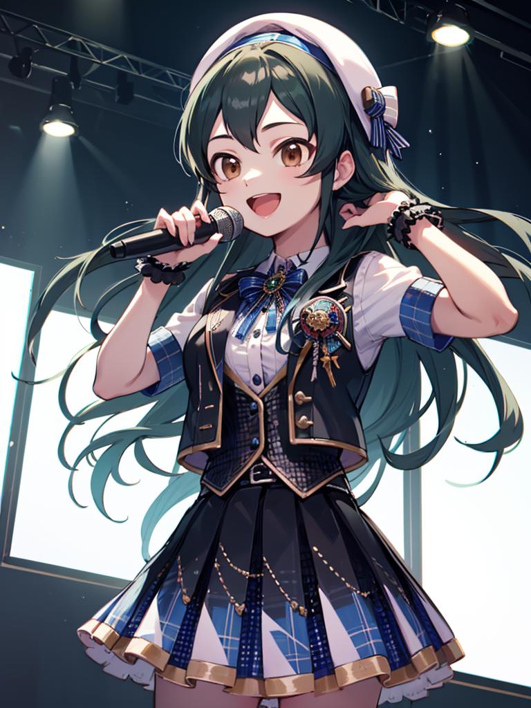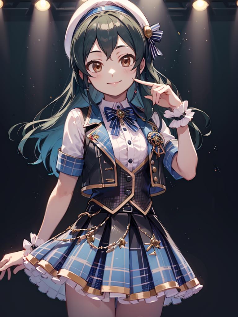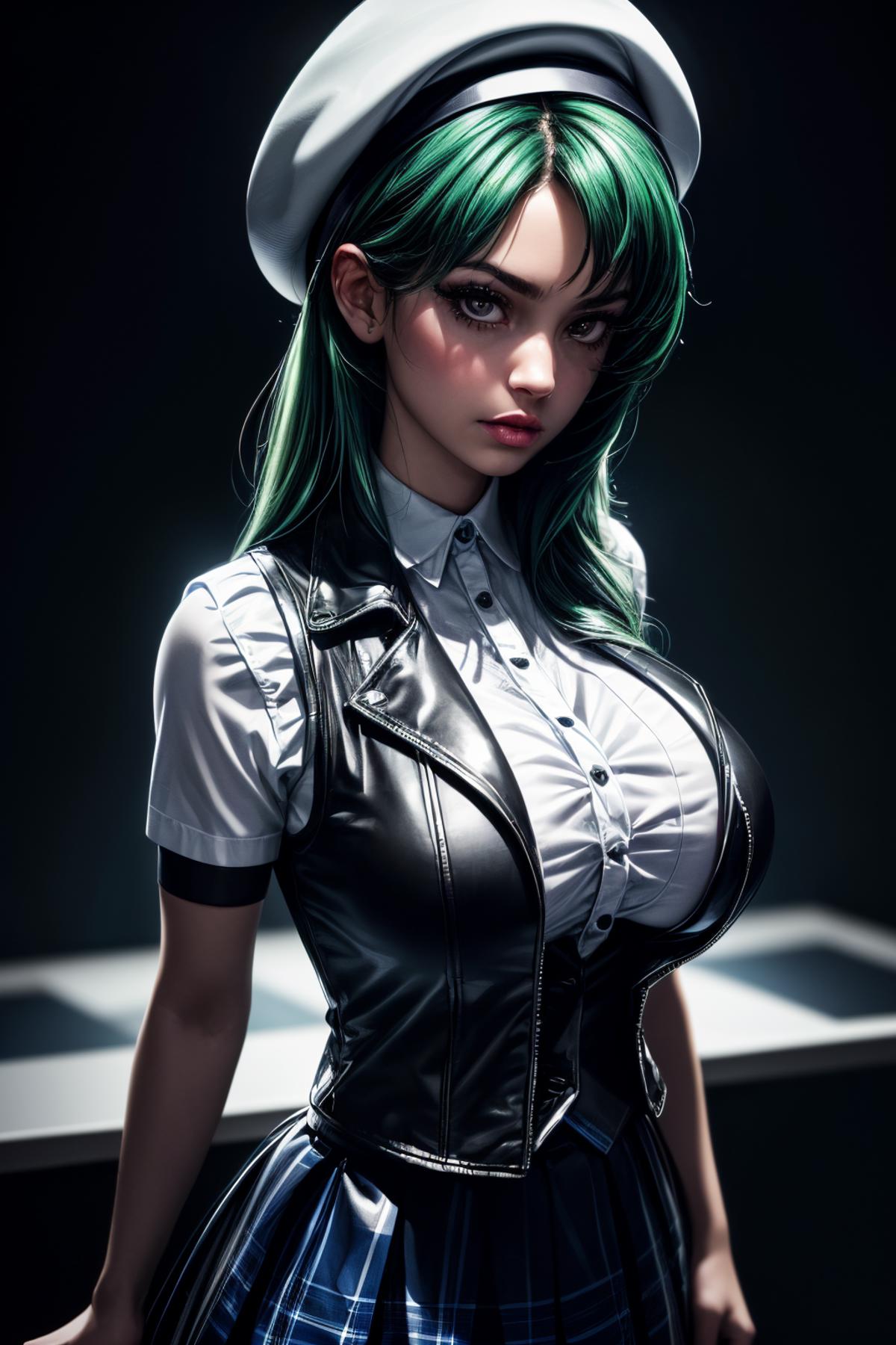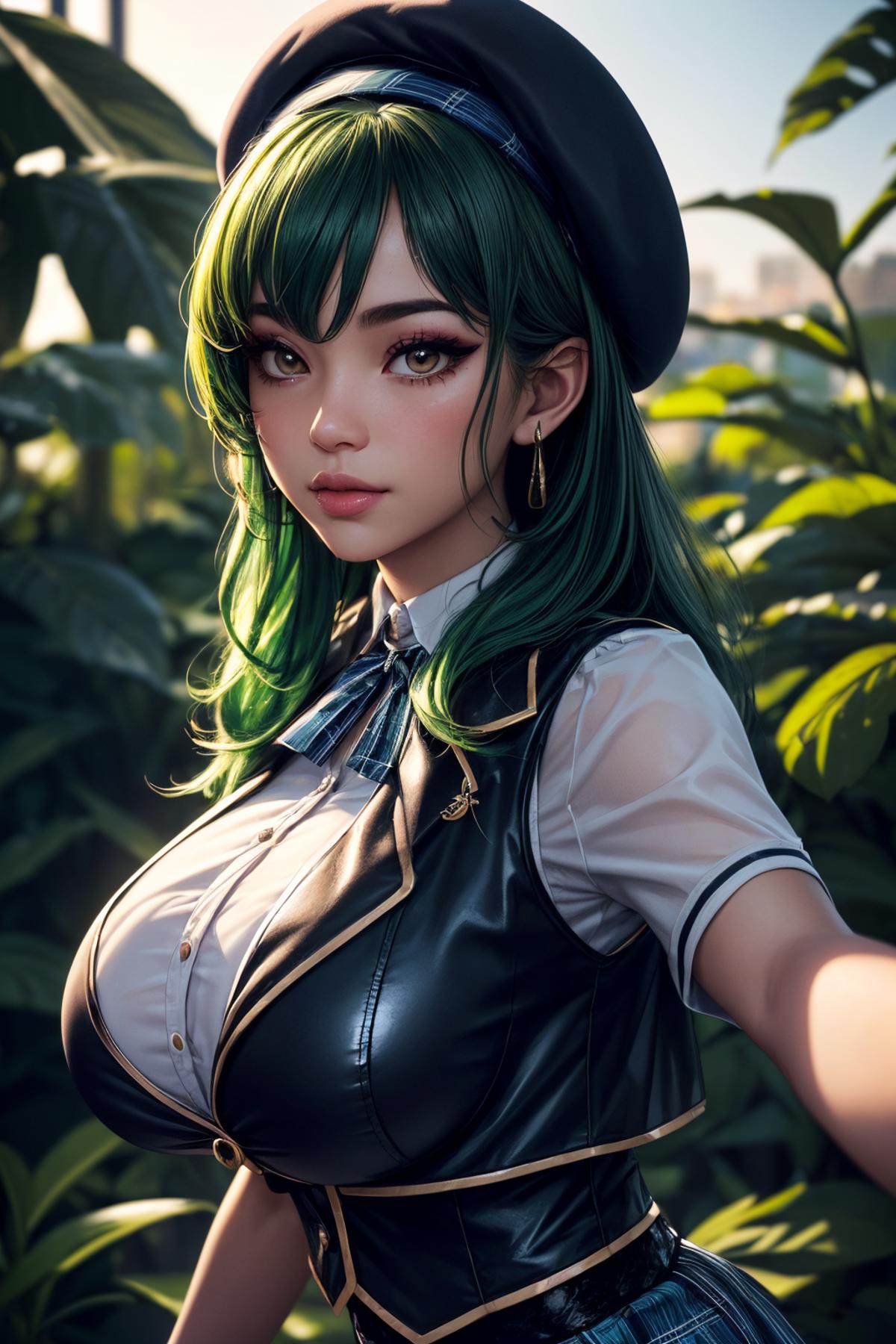 trigger : izumiohishi01 others : ,black vest,beret,short sleeves,plaid skirt,green hair