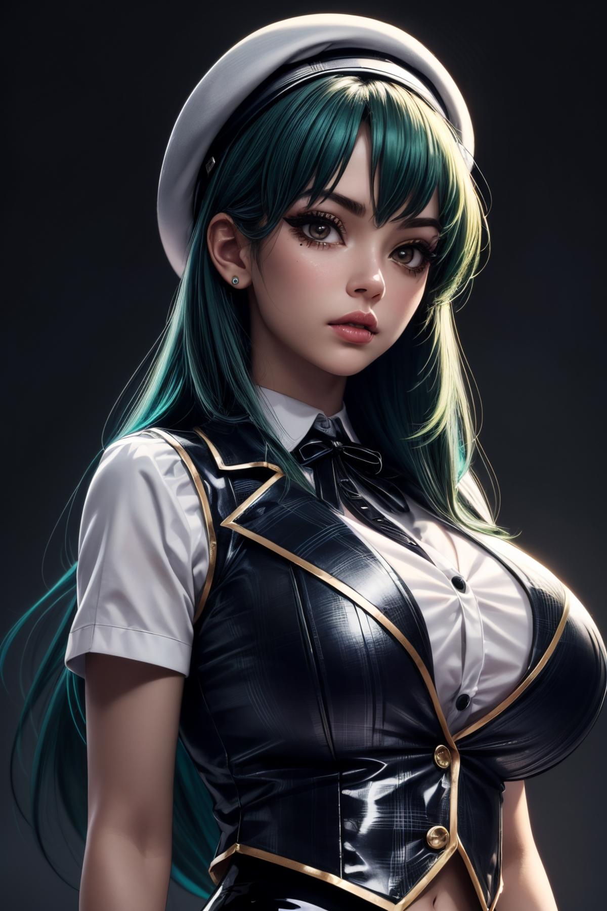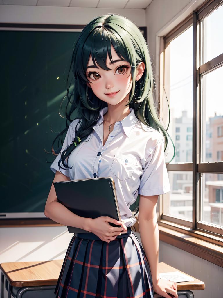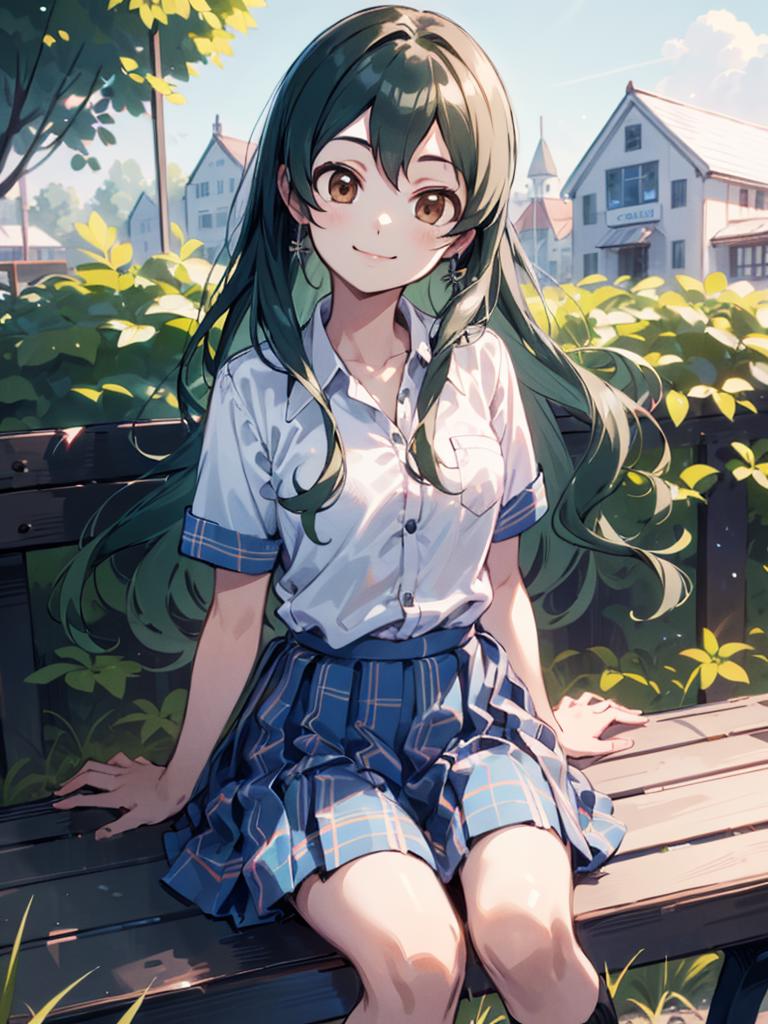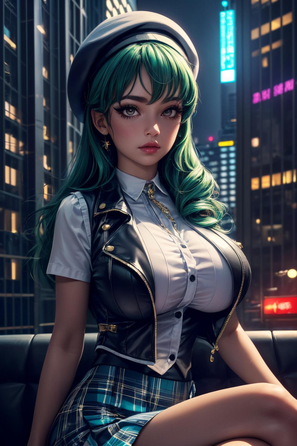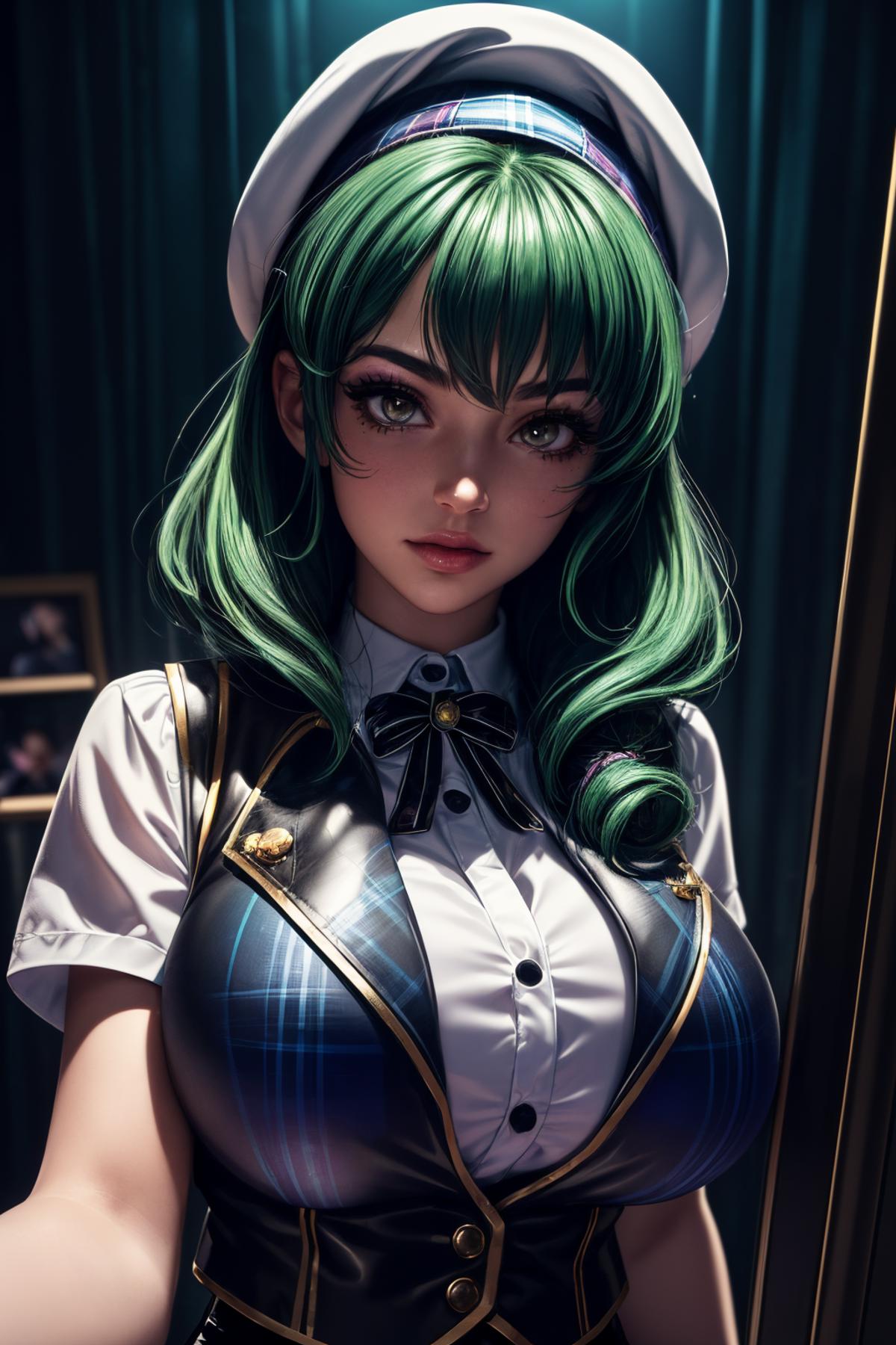trigger : izumiohishi01 others : ,black vest,beret,short sleeves,plaid skirt,green hair