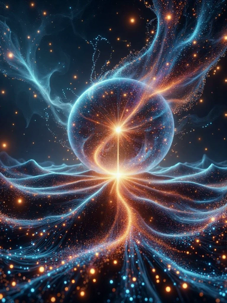 •Recommended words: light particle, a vibrant orange and black butterfly is soaring in the air. The butterfly's wings are adorned with black dots,adding a touch of contrast to the vibrant colors of the sky. The background is a deep black