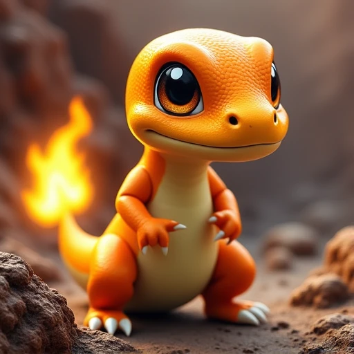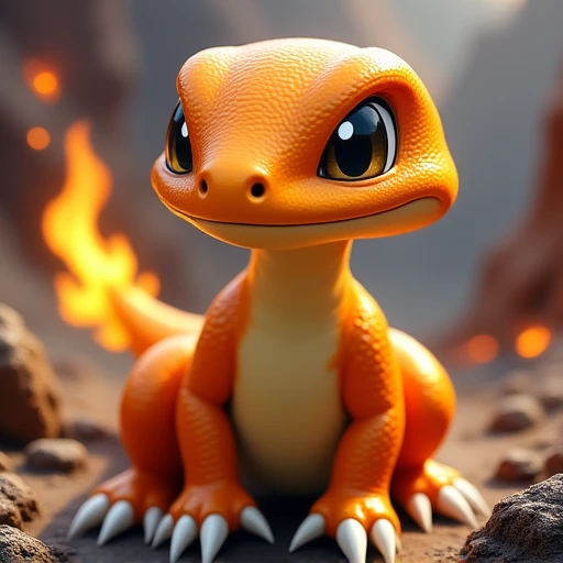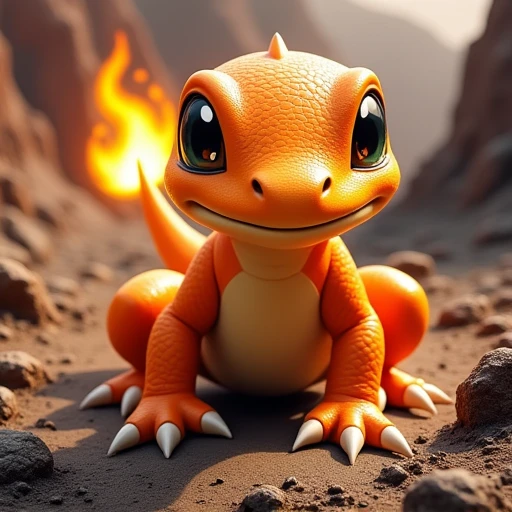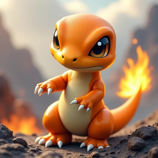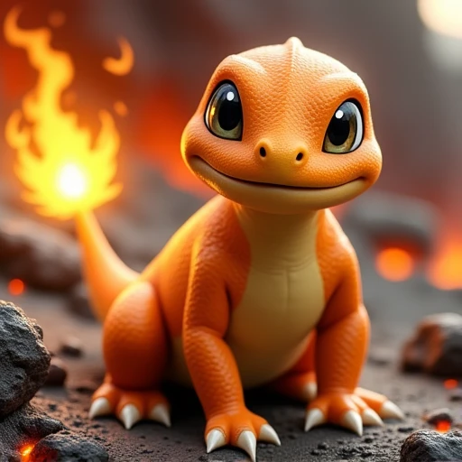 Environmental Blending: Our model ensures Charmander fits naturally into any given backdrop, whether it's a rocky terrain, a volcanic landscape, or any other setting, with realistic lighting and shadow play that matches the environment.