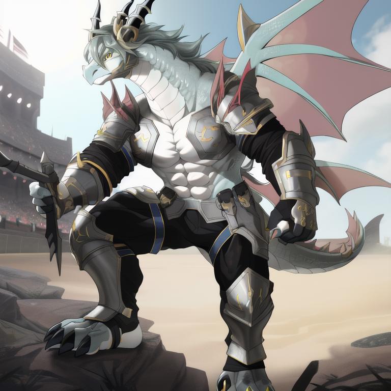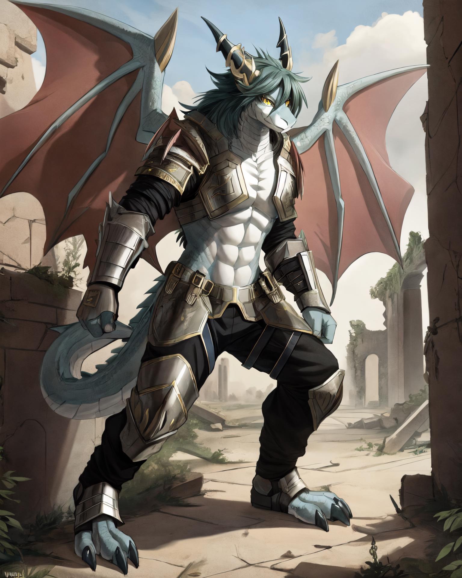 Outfit positives: armored jaw, asymmetrical armor, pants, foot armorDescription