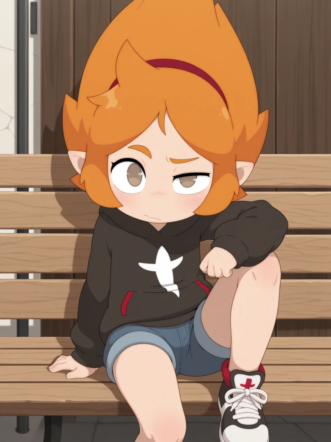 Base Prompts: illuelely, pointy ears, orange hair, short hair, hairband, brown eyes