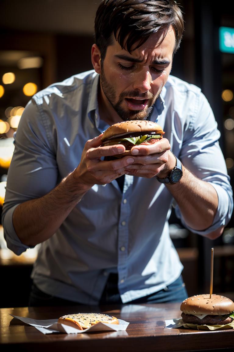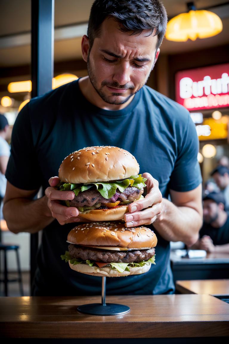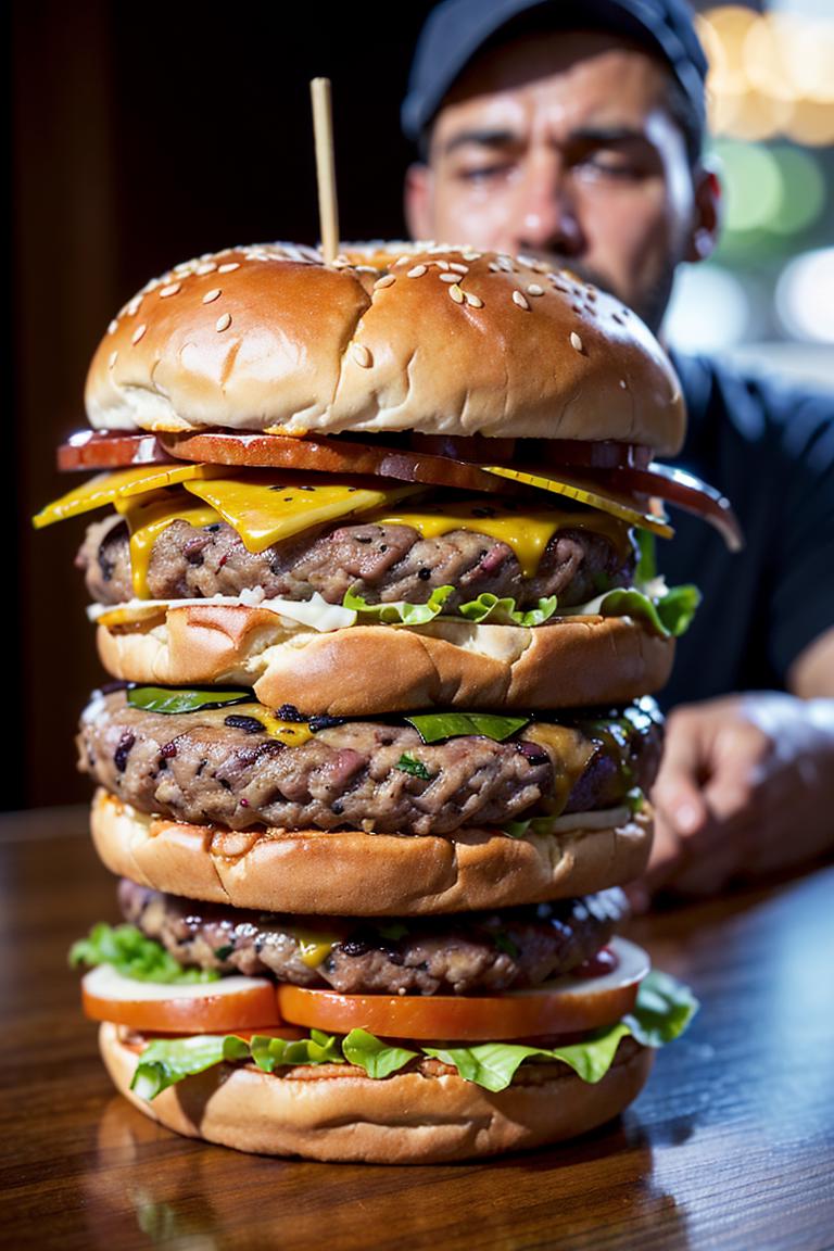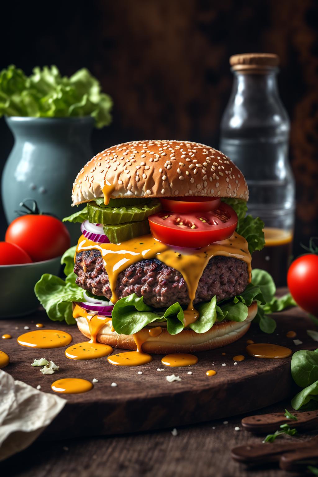 You can generate various still life images of burgers with simple prompt words