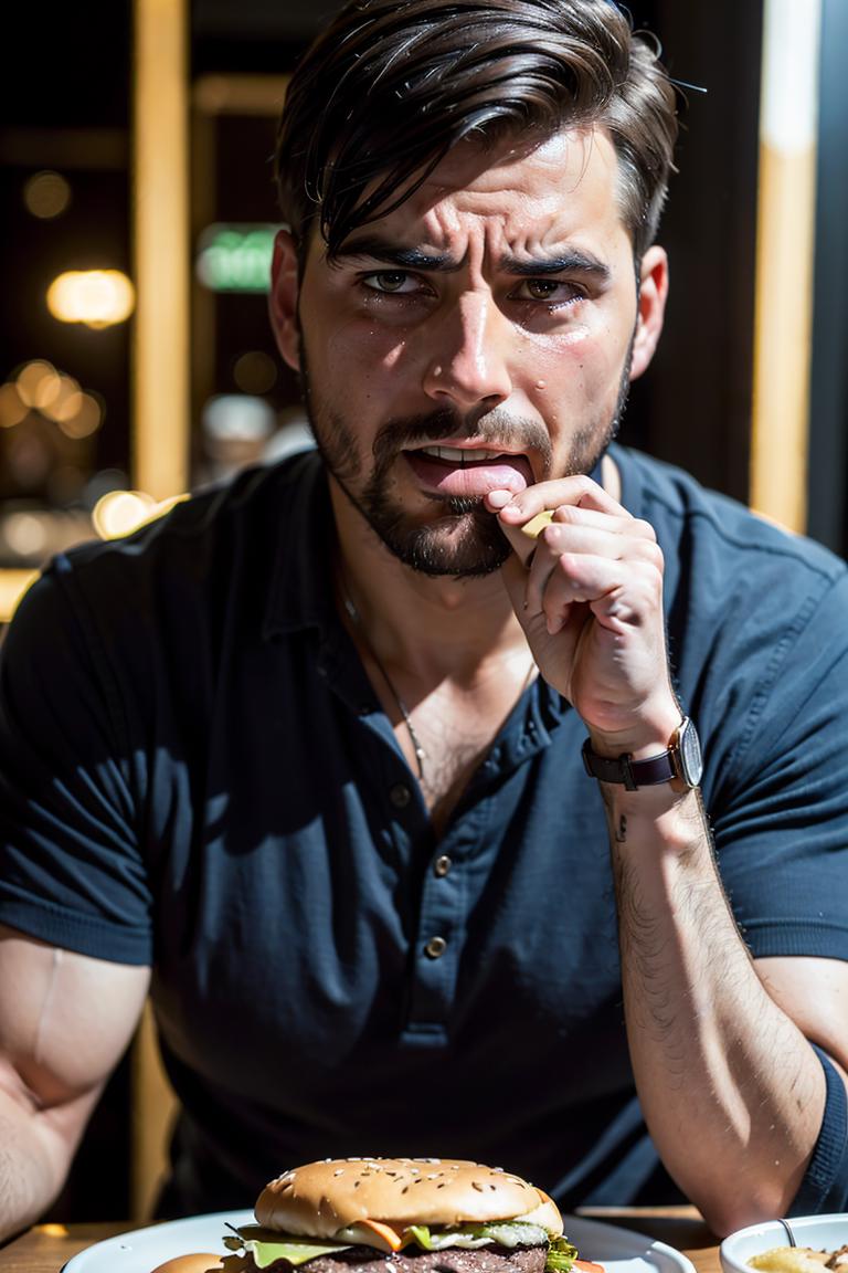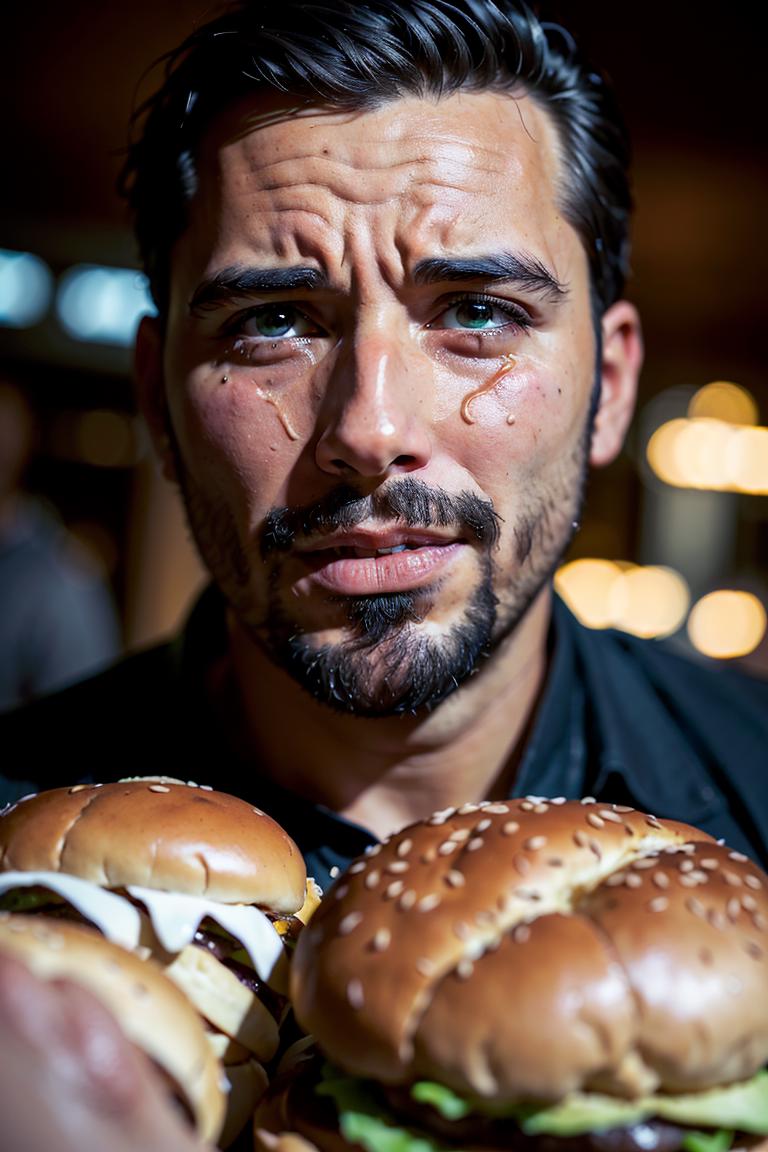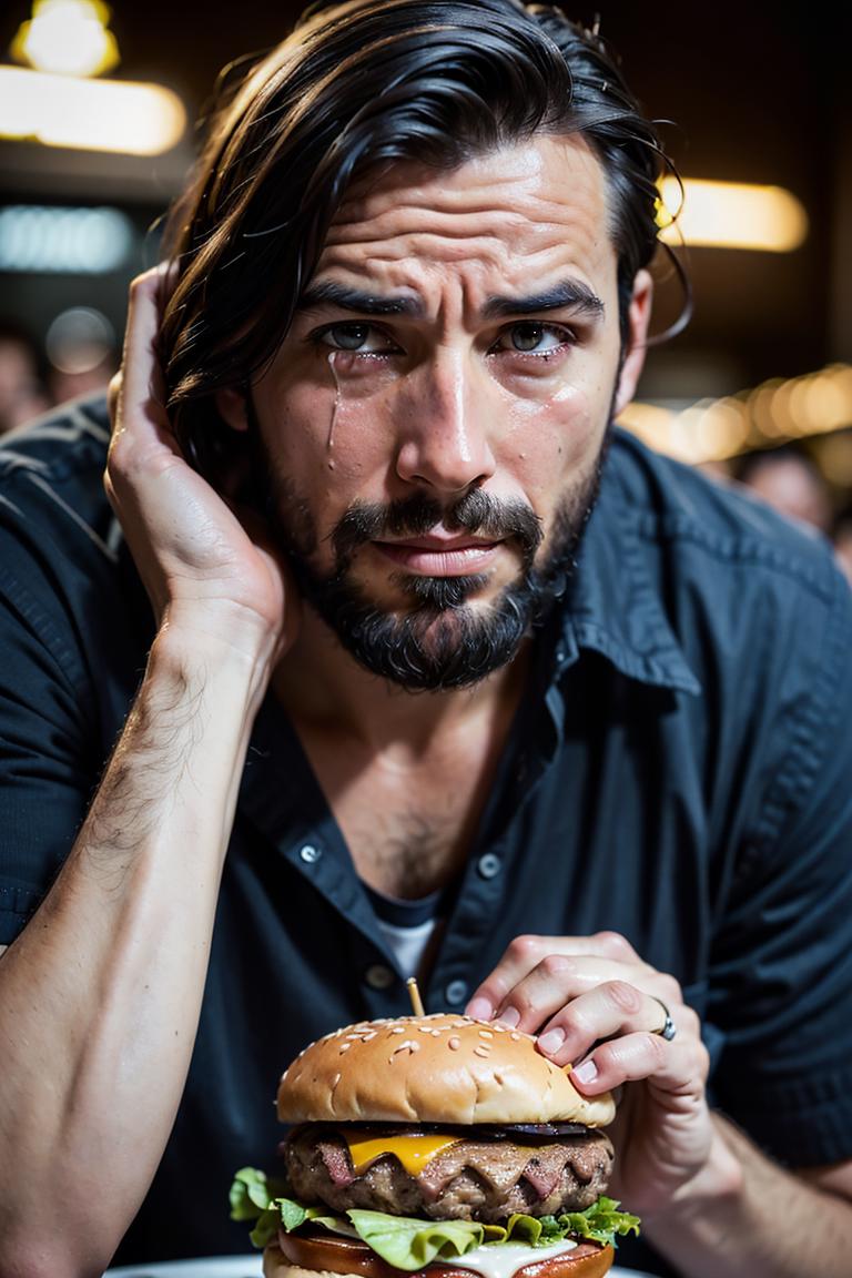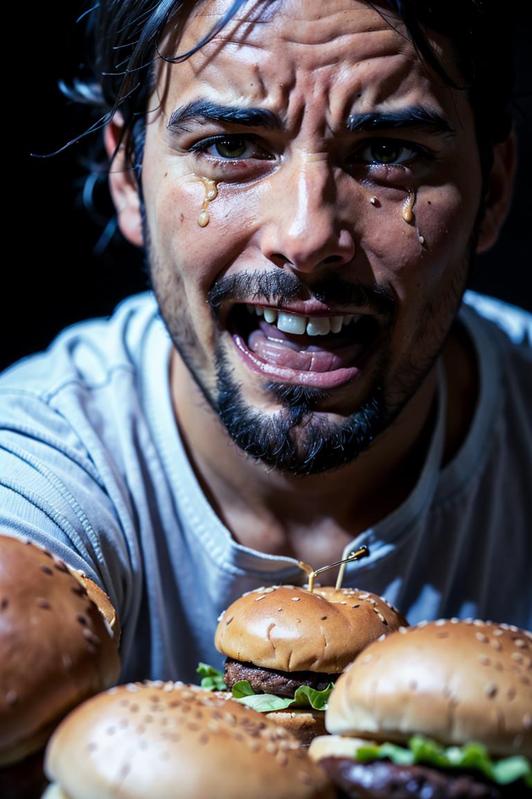 You can generate various still life images of burgers with simple prompt words