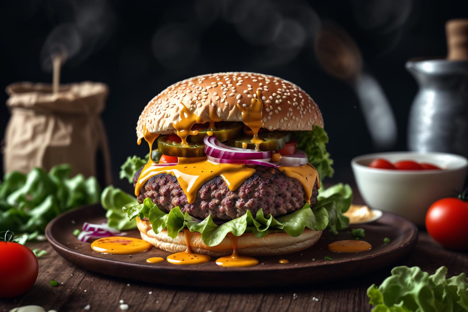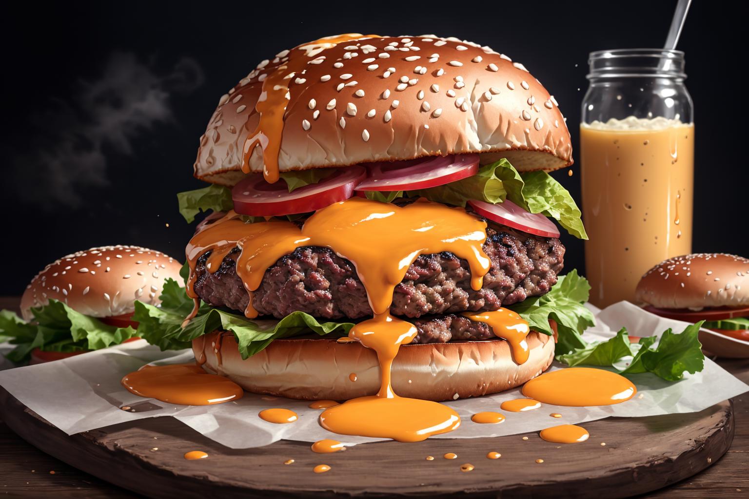 通过简单的提示词你可以生成各种关于汉堡的静物图片
