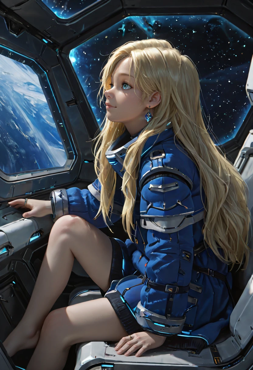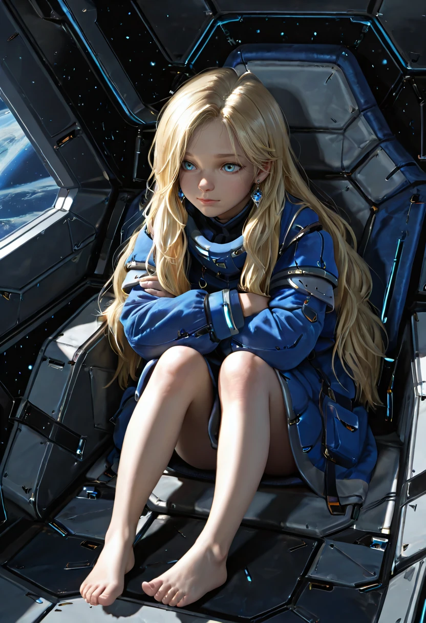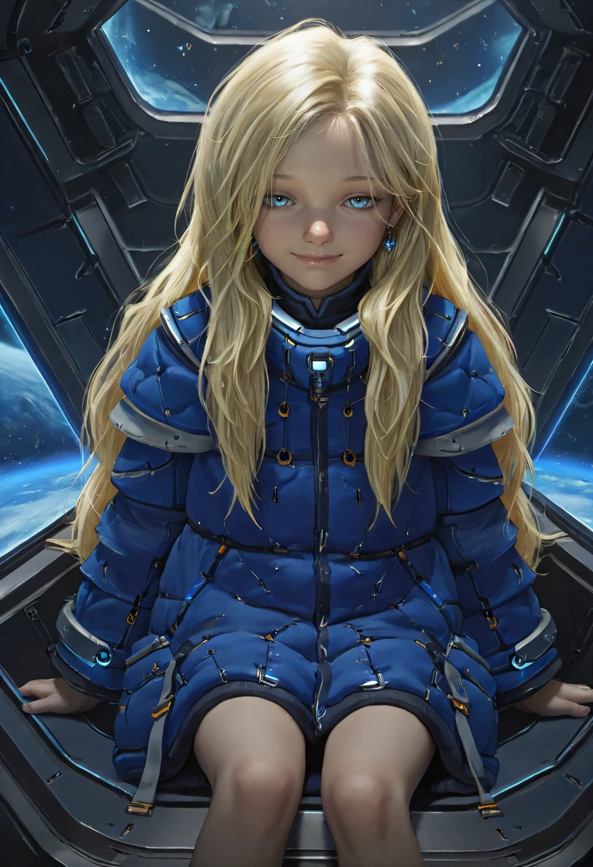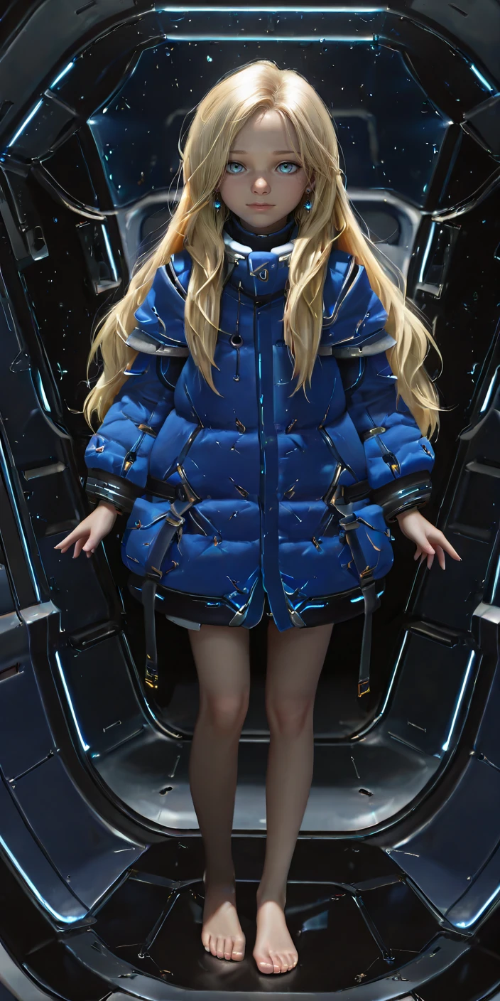 pdiana, 1girl, long hair, blonde hair, blue eyes, multicolored eyes, brownish ring pupils, young girl, blue coat, realistic,