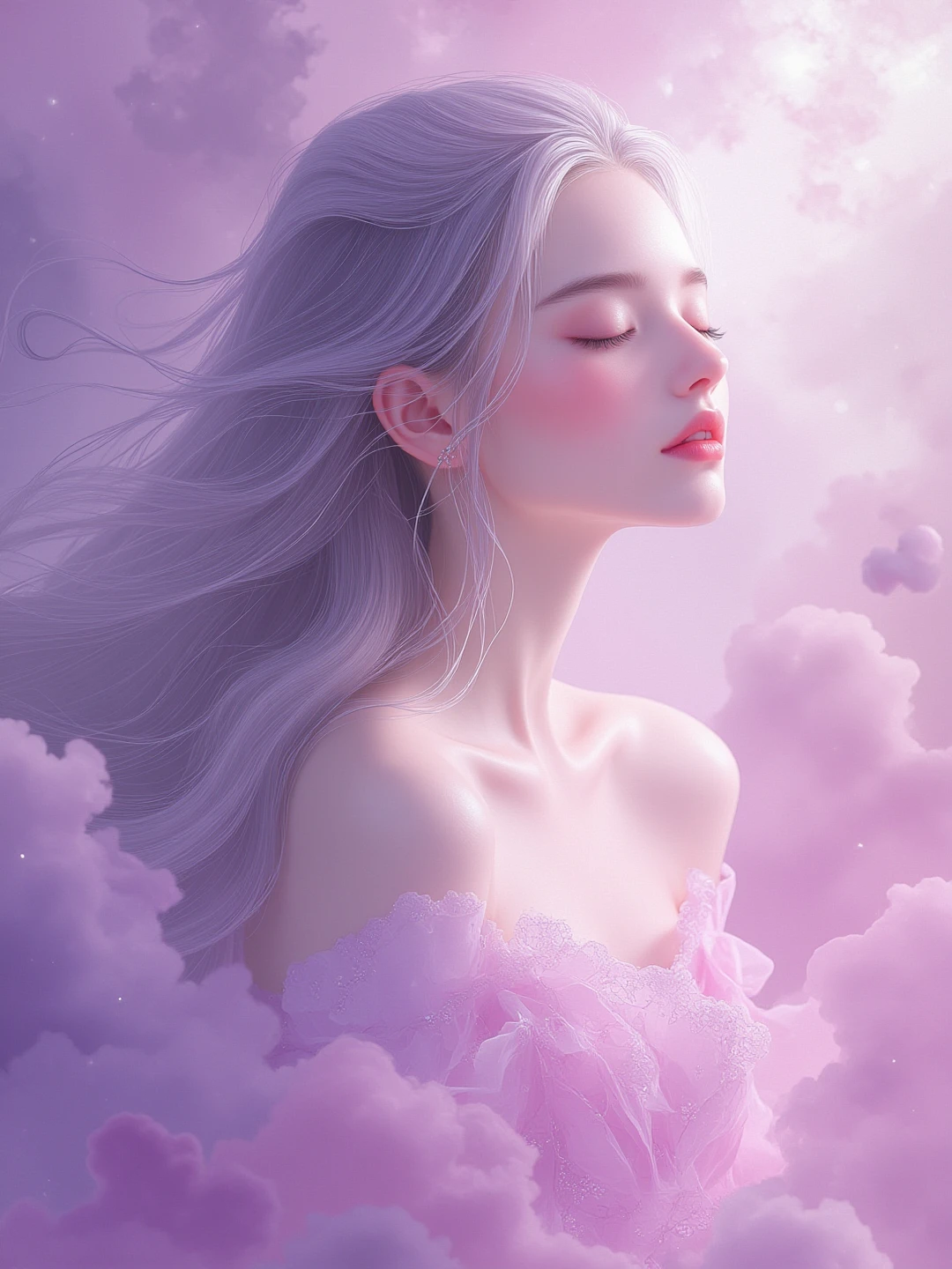 The delicate brushstrokes and dreamy background successfully convey the emotions of tranquility, mystery, elegance, and hope in Eastern aesthetics, showcasing the beautiful vision of harmonious coexistence between humans and nature