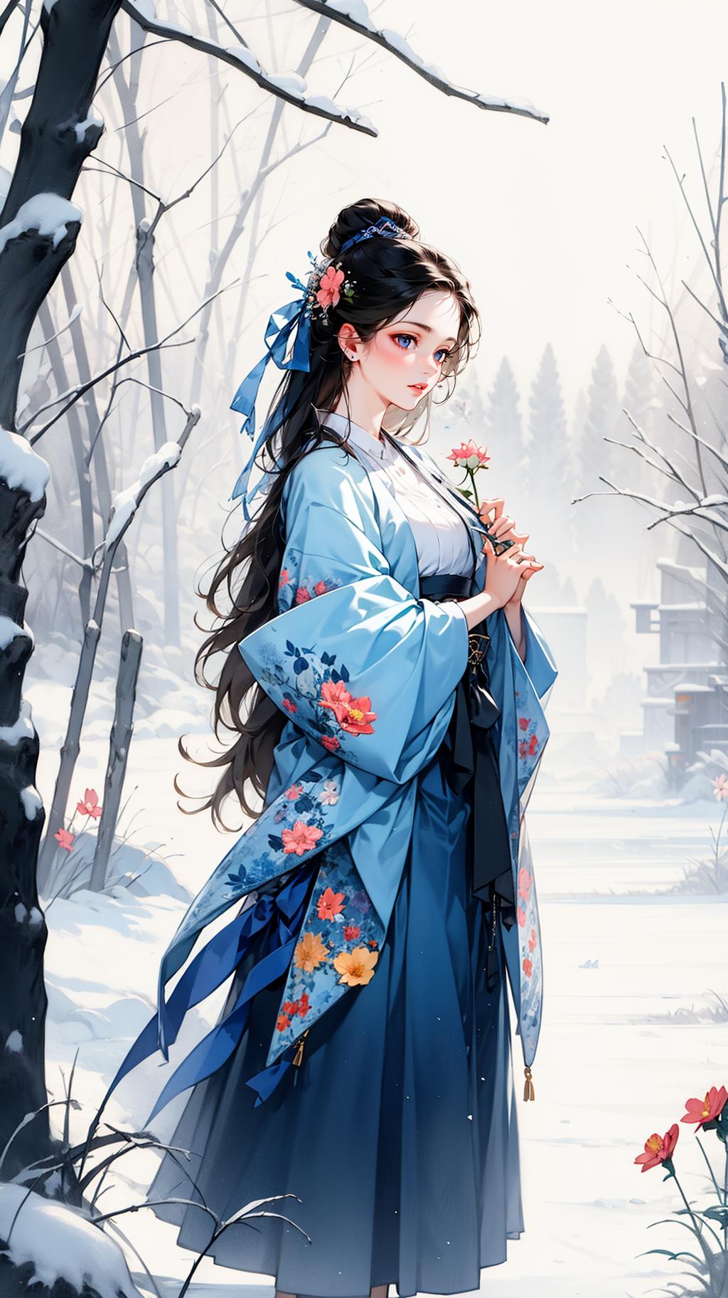 With Snowy Landscape and Lotus Pond Background