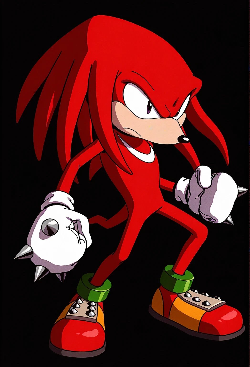 KnucklesSU, 1boy, red fur, long red dreadlocks, white gloves, spiked knuckles, red shoes, sonic the hedgehog, black, short, knuckles the echidna,