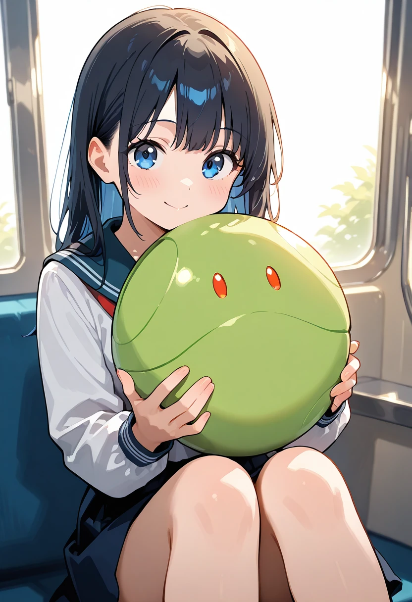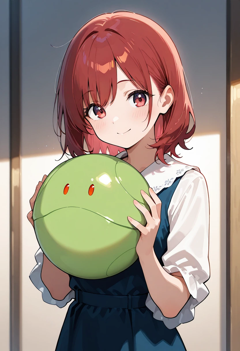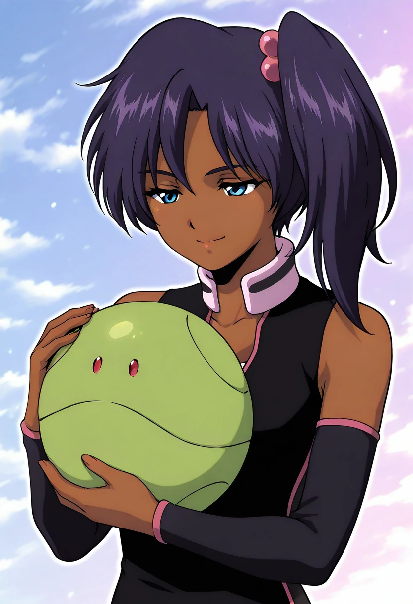 It is a drawing of a person holding Haro, the mascot character of the Gundam series.