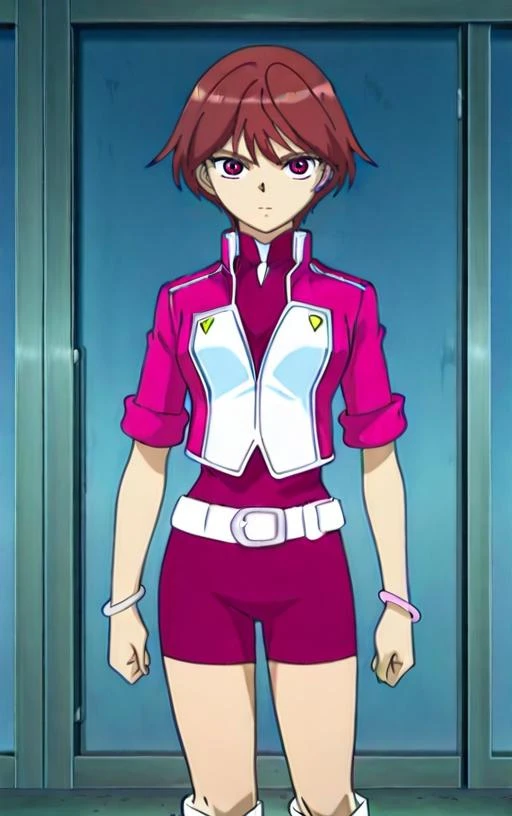 digimon savers, yoshino, 1girl, short hair, red hair, red eyes, small breasts,