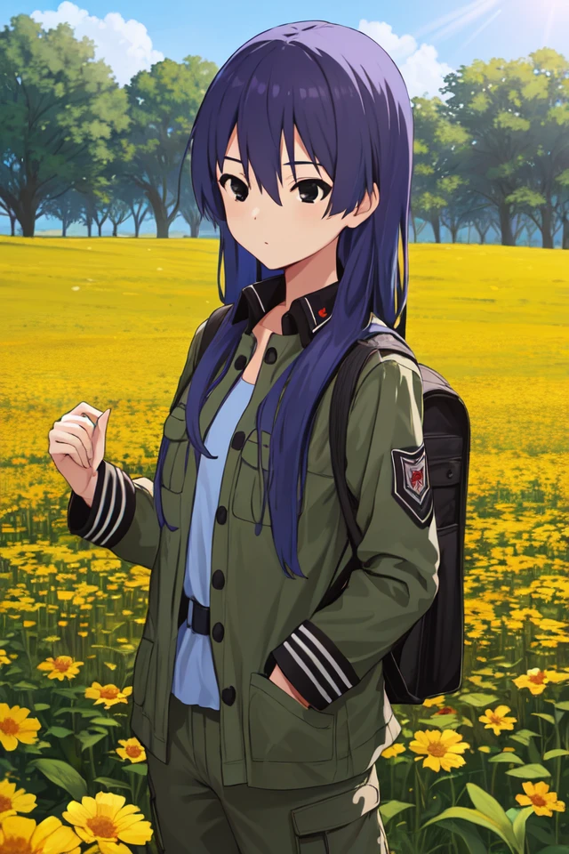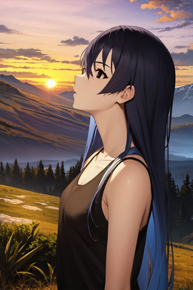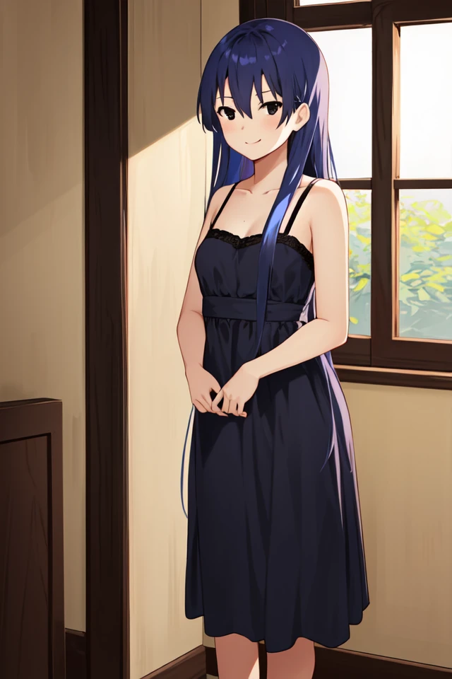 snwrio, long hair, blue hair, (black eyes:1.5)