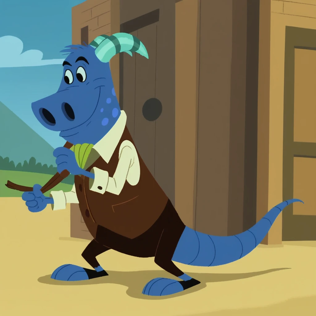 artie, no humans, 1boy, solo, furry male, horns, blue skin, black eyes, shirt, vest,