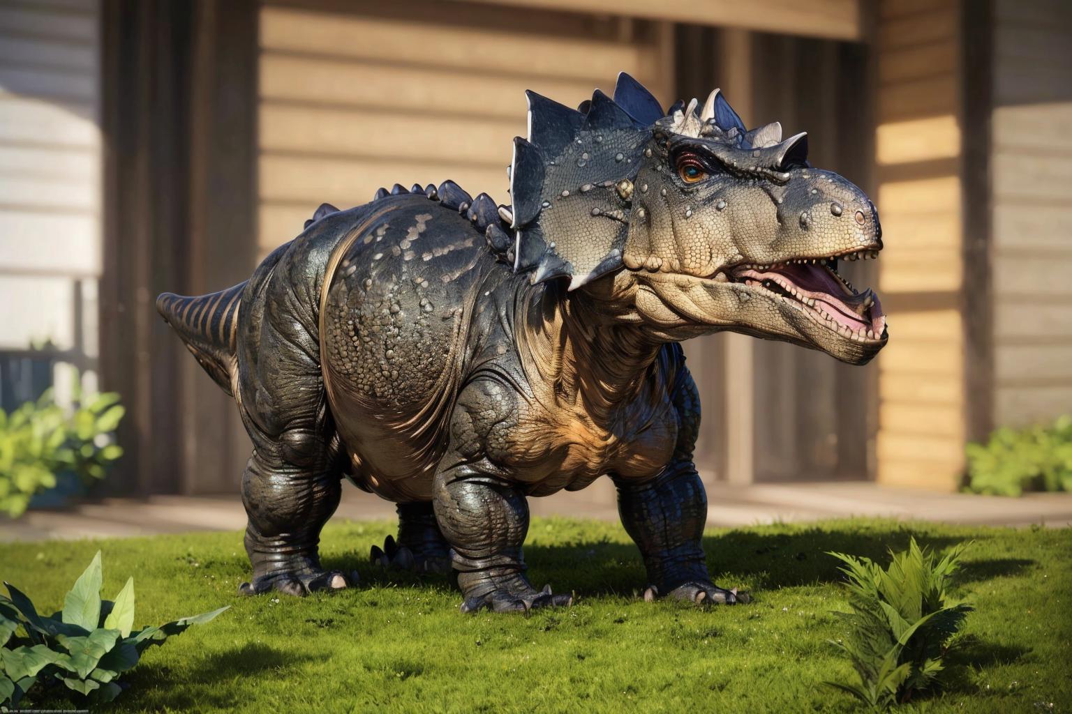 Use "dinosaur", "tricerasauruss" and can use 2 or 3 colors in the prompt to change the dinosaur.