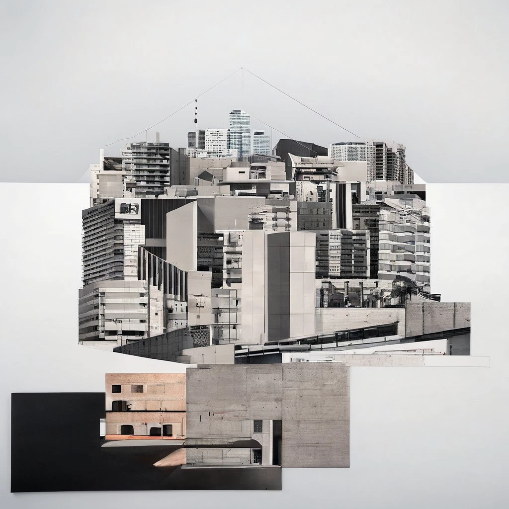 This model has been trained to produce landscapes and cityscapes in a collage style.