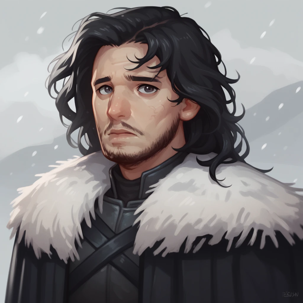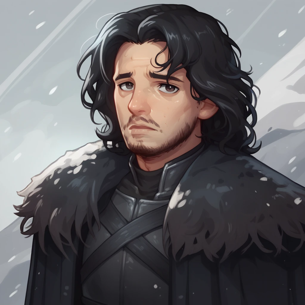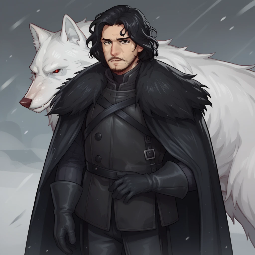 JonSnow, 1boy, solo, black hair, long hair, dark grey eyes, facial hair,