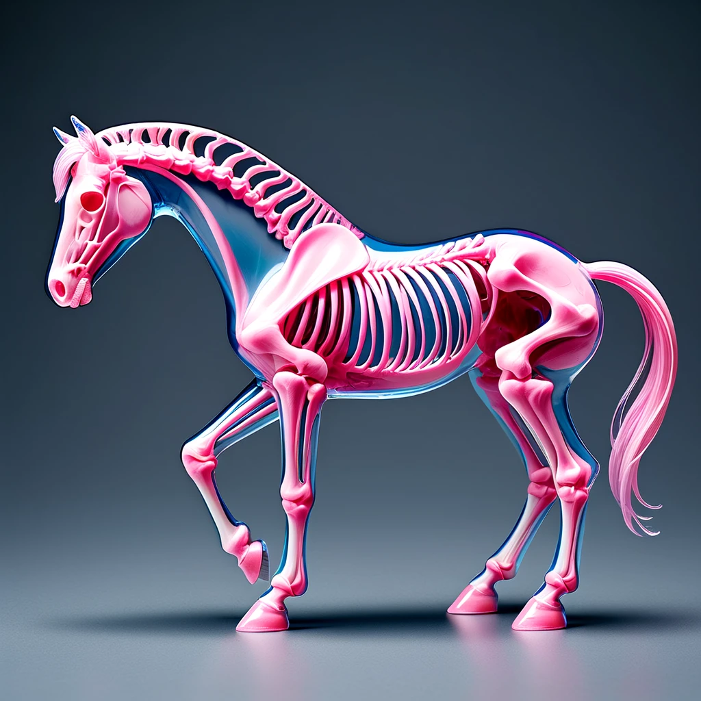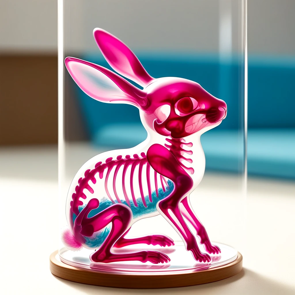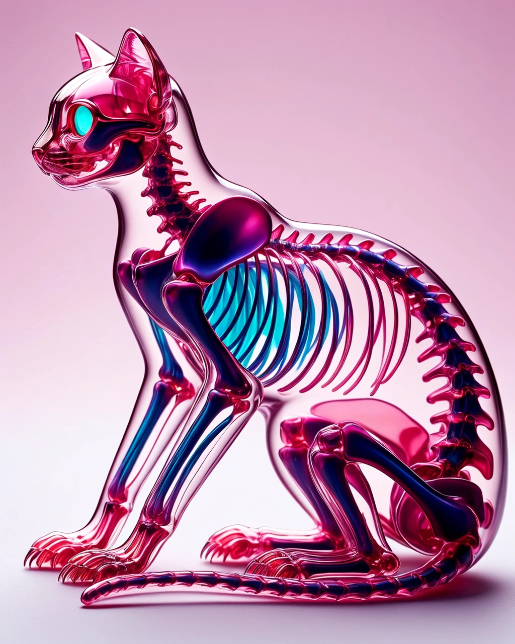 Transparent double-stained specimens, using Alcian Blue and Alizarin Red, are an impressive method for biological specimen preparation. Alcian Blue is used to stain the cartilage blue, and Alizarin Red is used to stain the bones red. This technique renders most of the specimen transparent, except for the skeletal and cartilaginous structures, which are clearly highlighted. It allows for the detailed examination of anatomical features and is particularly useful for studying complex arrangements of bones and cartilage. The result is visually impactful specimens with clearly delineated skeletal structures against transparent soft tissues, making them invaluable for educational and research purposes in fields such as ???????, zoology, and developmental biology. They have become great tools.