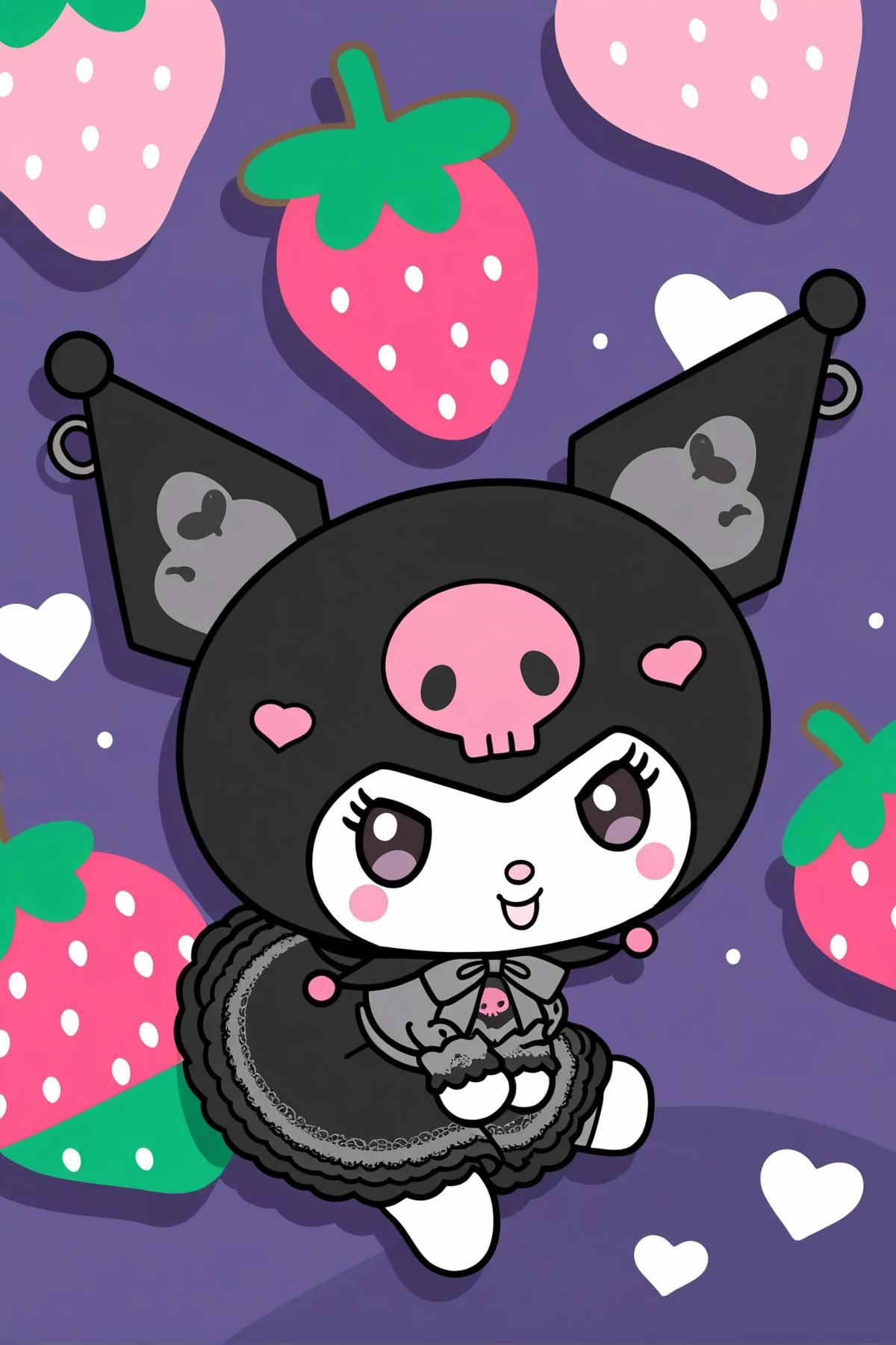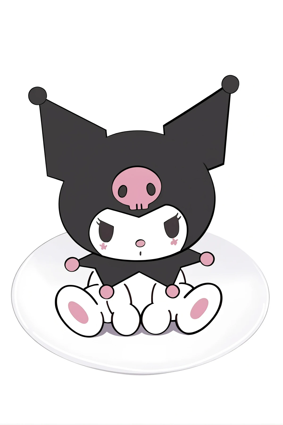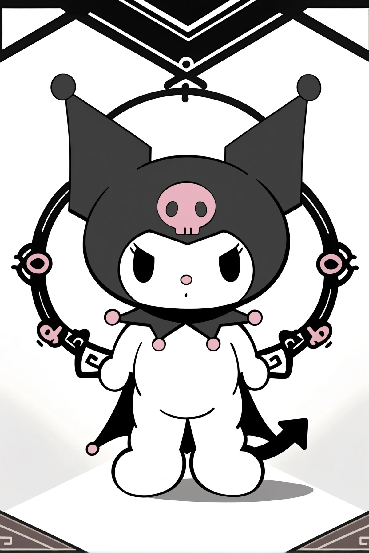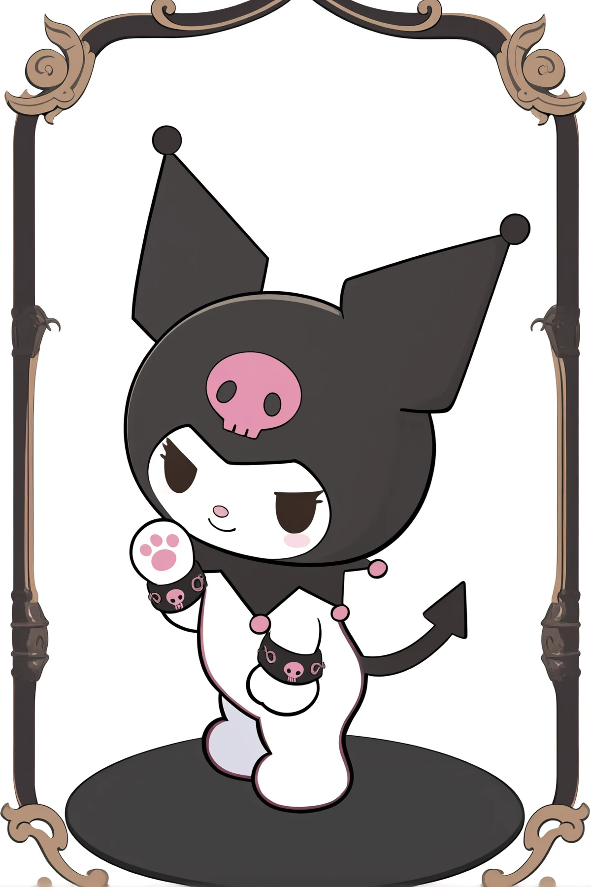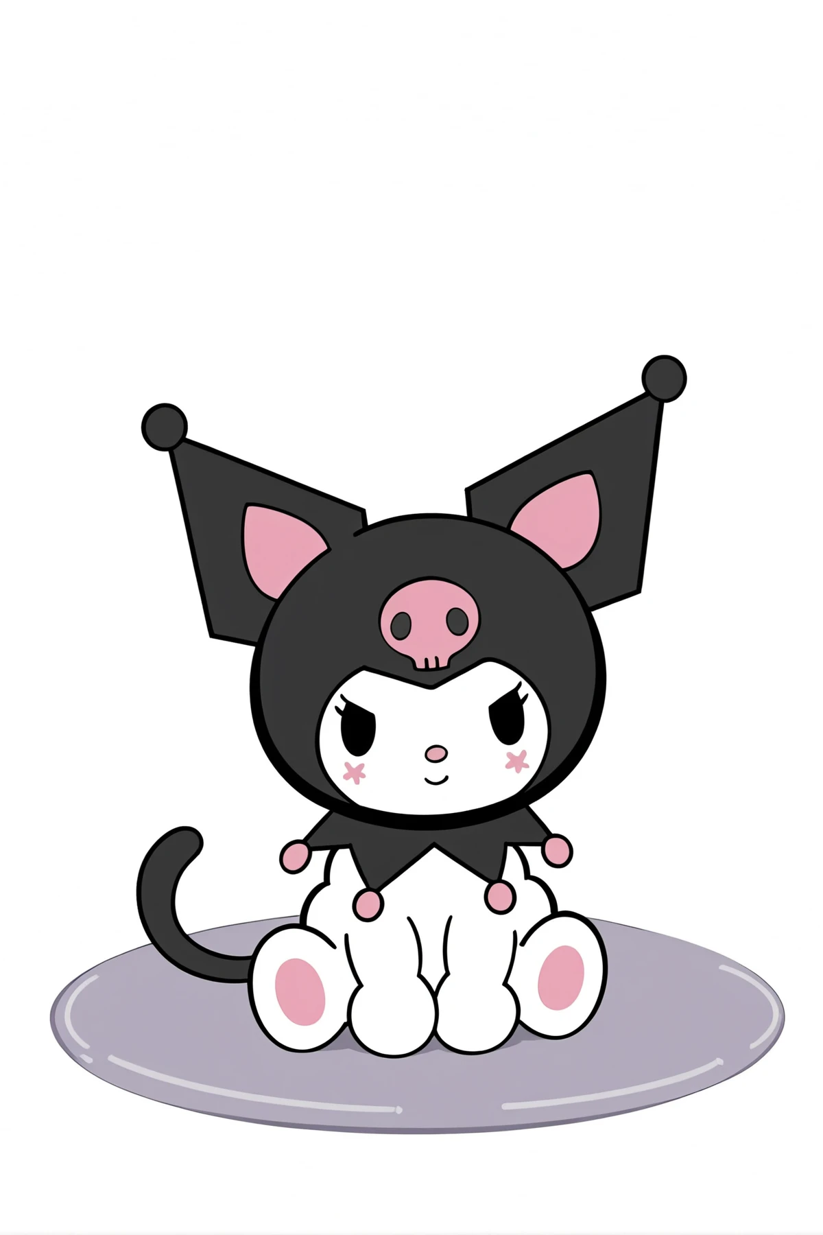 kuluomi cat, default clothes, black cat ears, forehead skull mark, Black head covering, cute anime pet, no humans, animal focus,