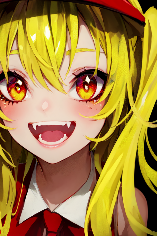 This LoRA specializes in upper body shots and is best used with simple backgrounds. It can produce intense, vibrant colors and effects. It's also great at generating fangs with close-up shots. Eyes will not accurately reproduce LAM's works, nor will the shading.
