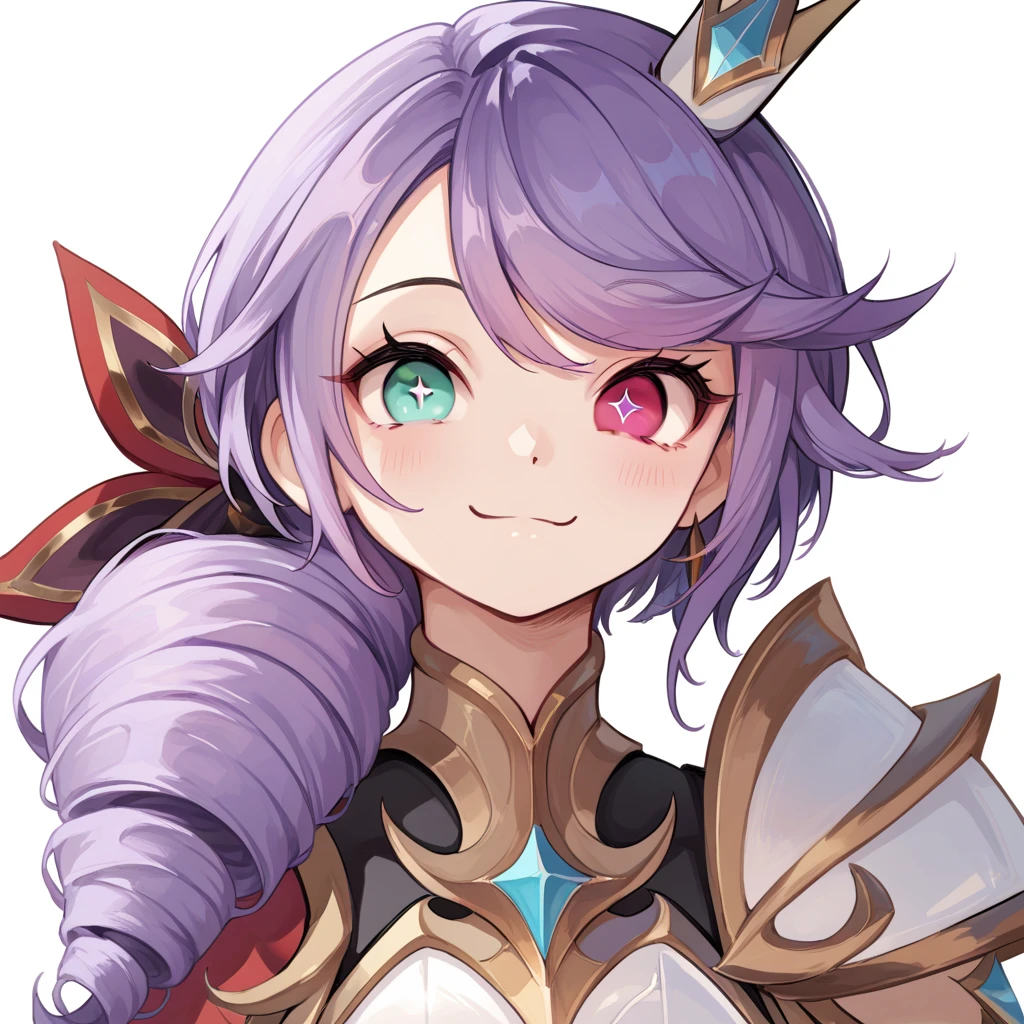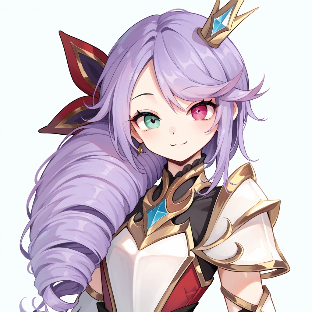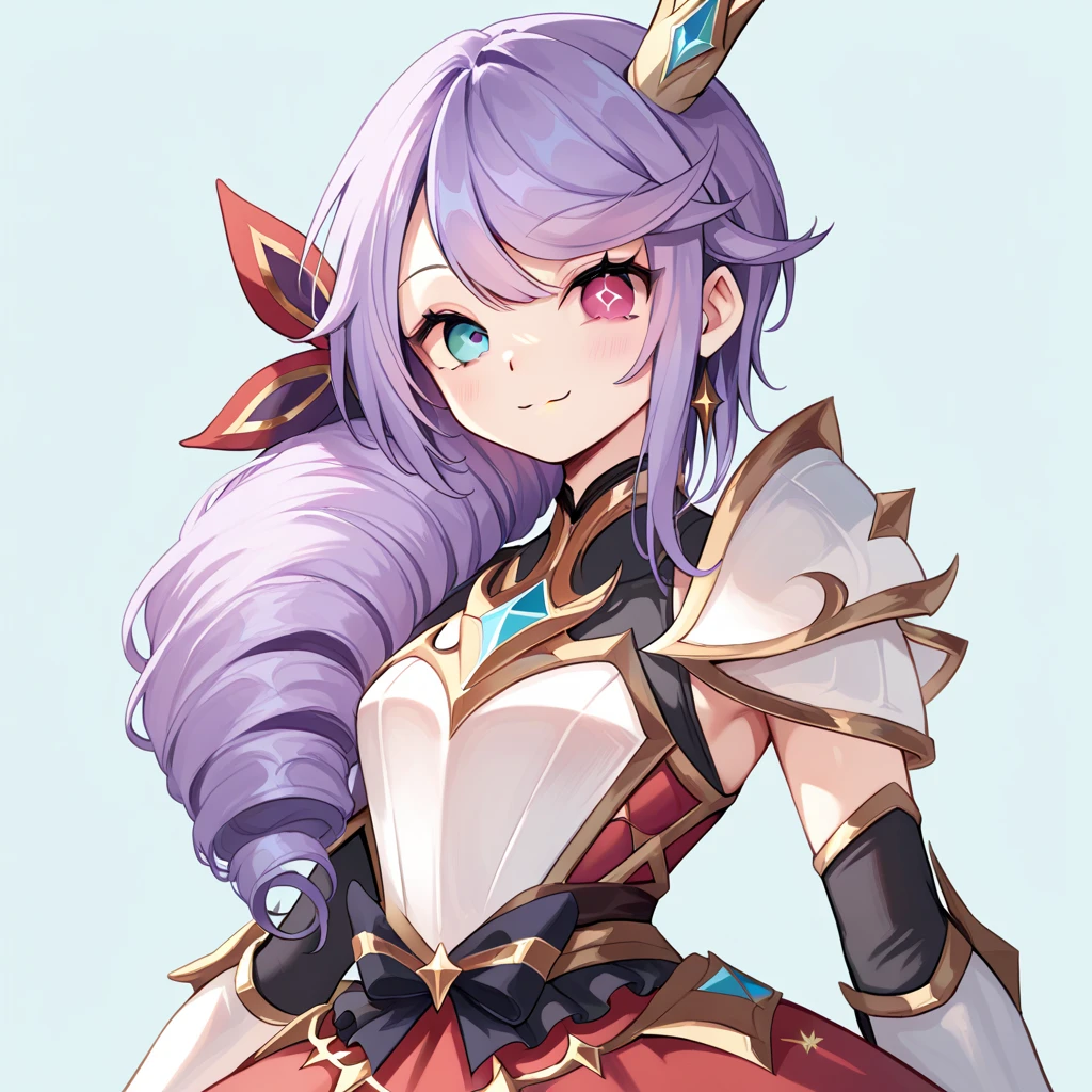 gwen battle queen, purple hair, drill hair, heterochromia, x-shaped pupil, red dress, armor, frilled cuffs如果你喜欢我的作品,也可以到我的Pixiv来看看: