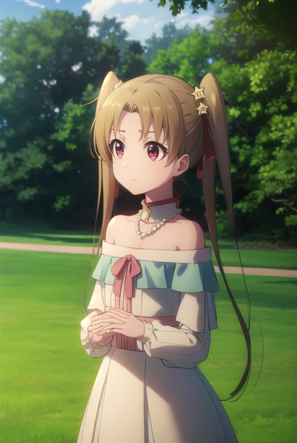 sherry tueli, long hair, brown hair, hair ornament, twintails, (brown eyes:1.5), star \(symbol\), star ornament,