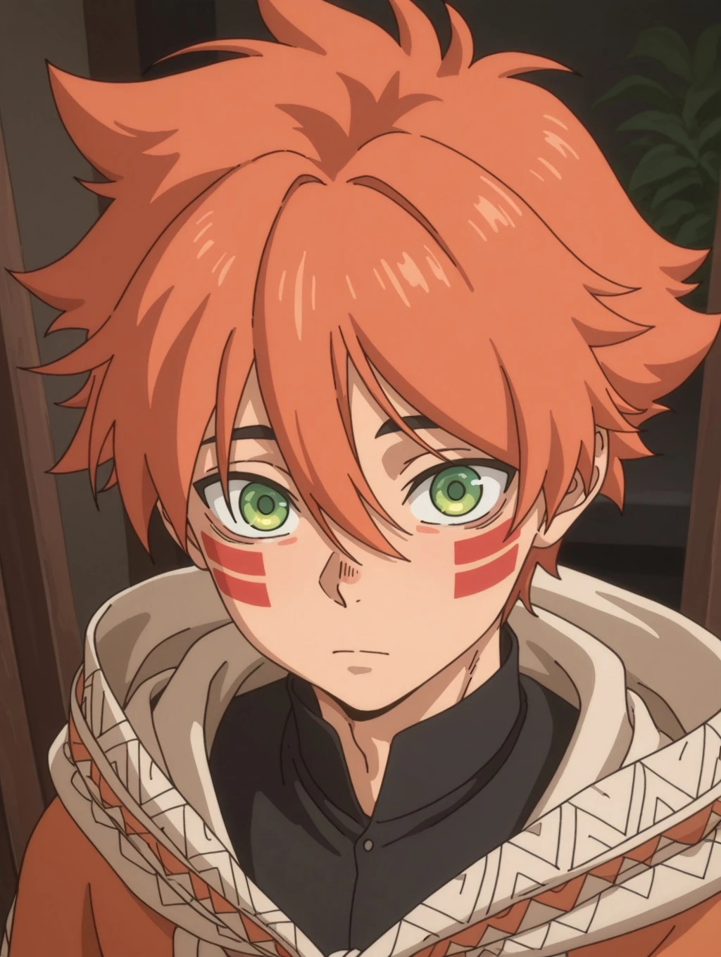 Little Johnny, green eyes, facial mark, hair between eyes,