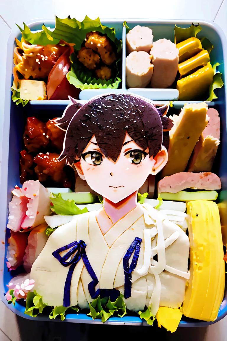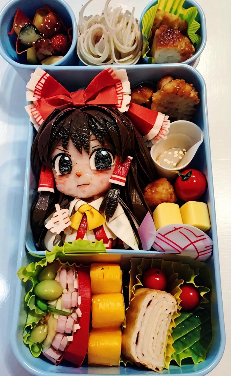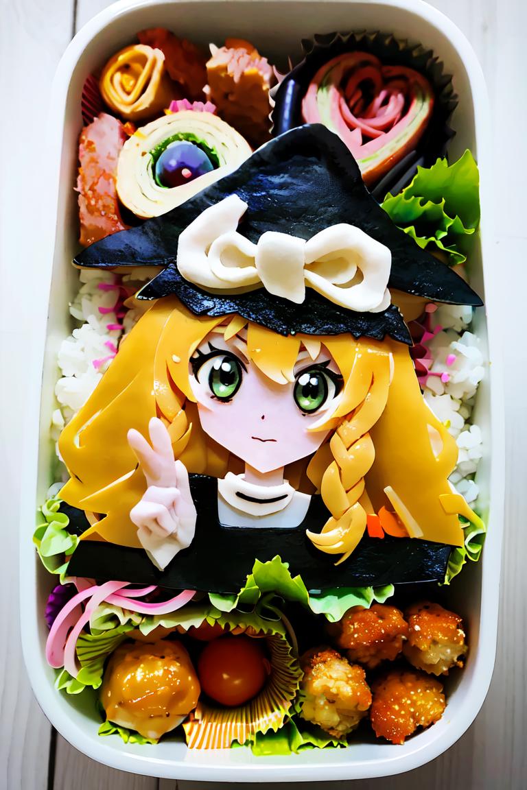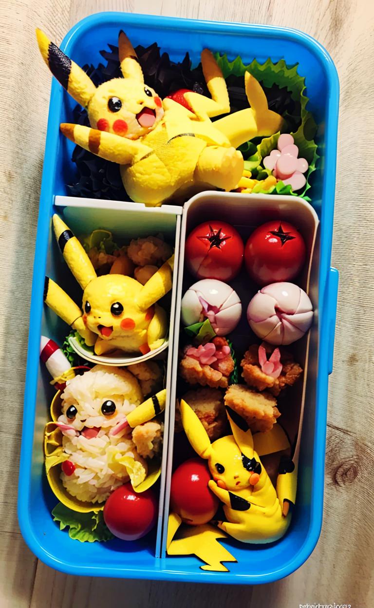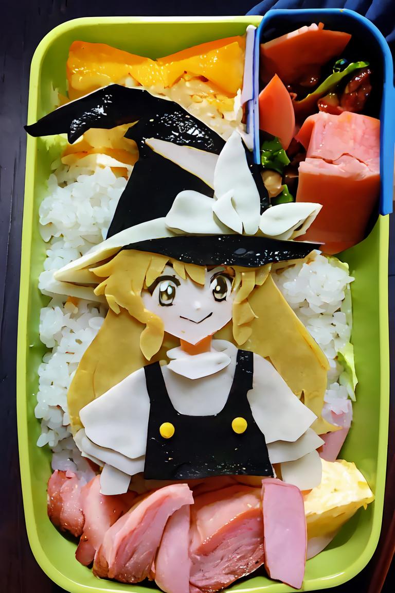 Kyaraben or charaben (キャラ弁), a shortened form of character bento (キャラクター弁当, kyarakutā bentō), is a style of elaborately arranged bento (Japanese boxed lunch) which features food decorated to look like people, characters from popular media, animals, and plants. Japanese homemakers often spend time devising their families' meals, including their boxed lunches. ー Wikipedia: Kyaraben