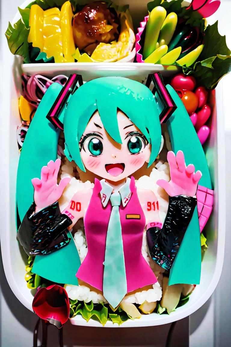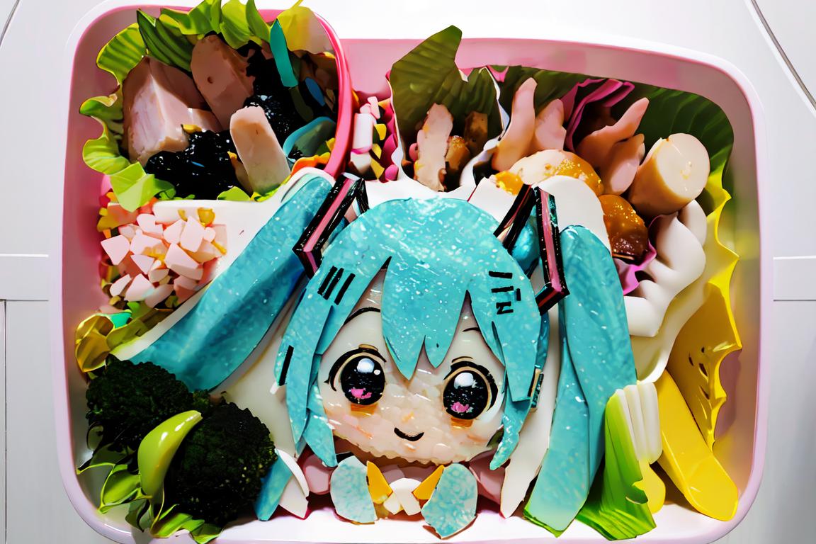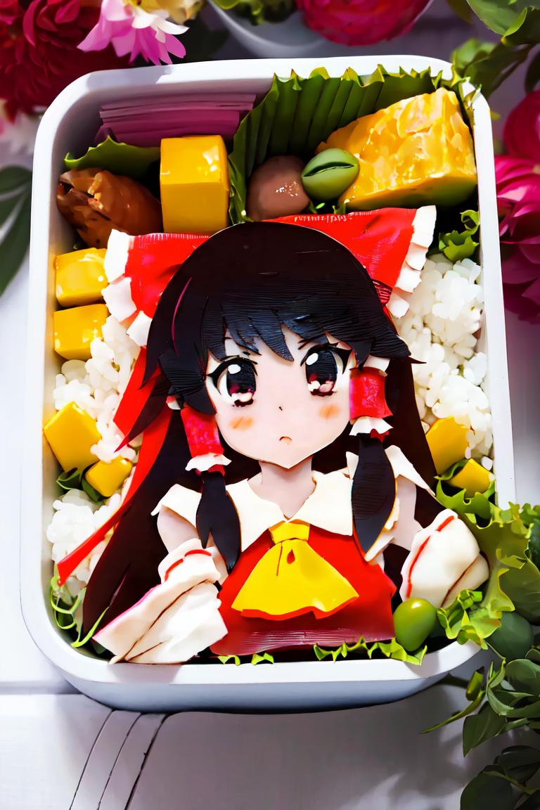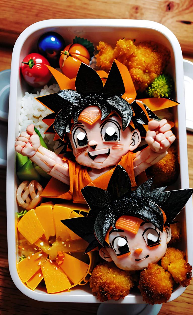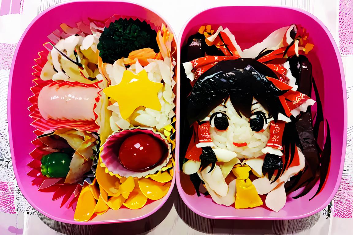 Kyaraben or charaben (キャラ弁), a shortened form of character bento (キャラクター弁当, kyarakutā bentō), is a style of elaborately arranged bento (Japanese boxed lunch) which features food decorated to look like people, characters from popular media, animals, and plants. Japanese homemakers often spend time devising their families' meals, including their boxed lunches. ー Wikipedia: Kyaraben