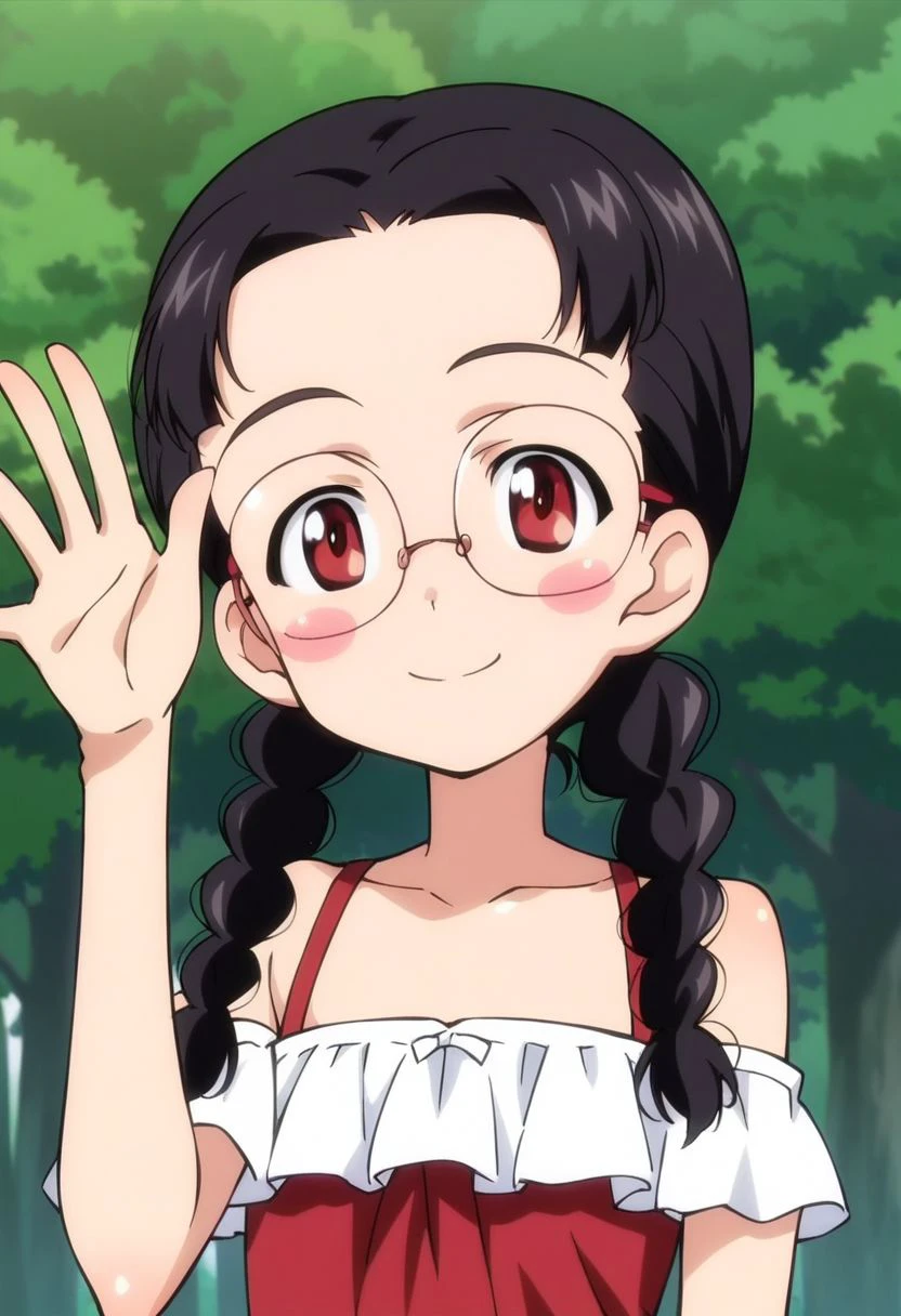 Other Tags : Twin Braids, Glasses, Black hair, Red eyes, Military Helmet