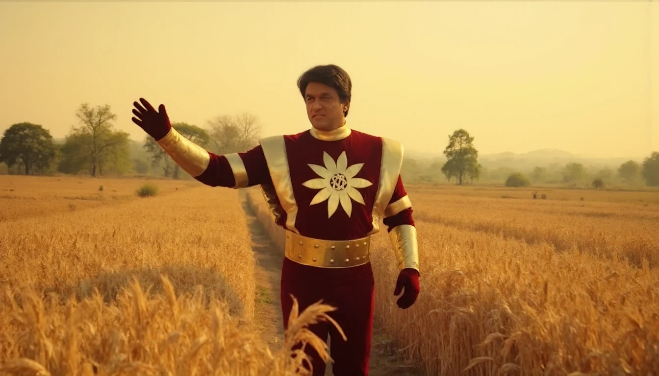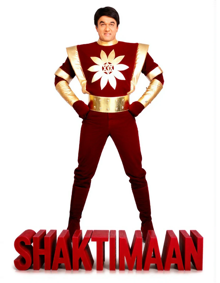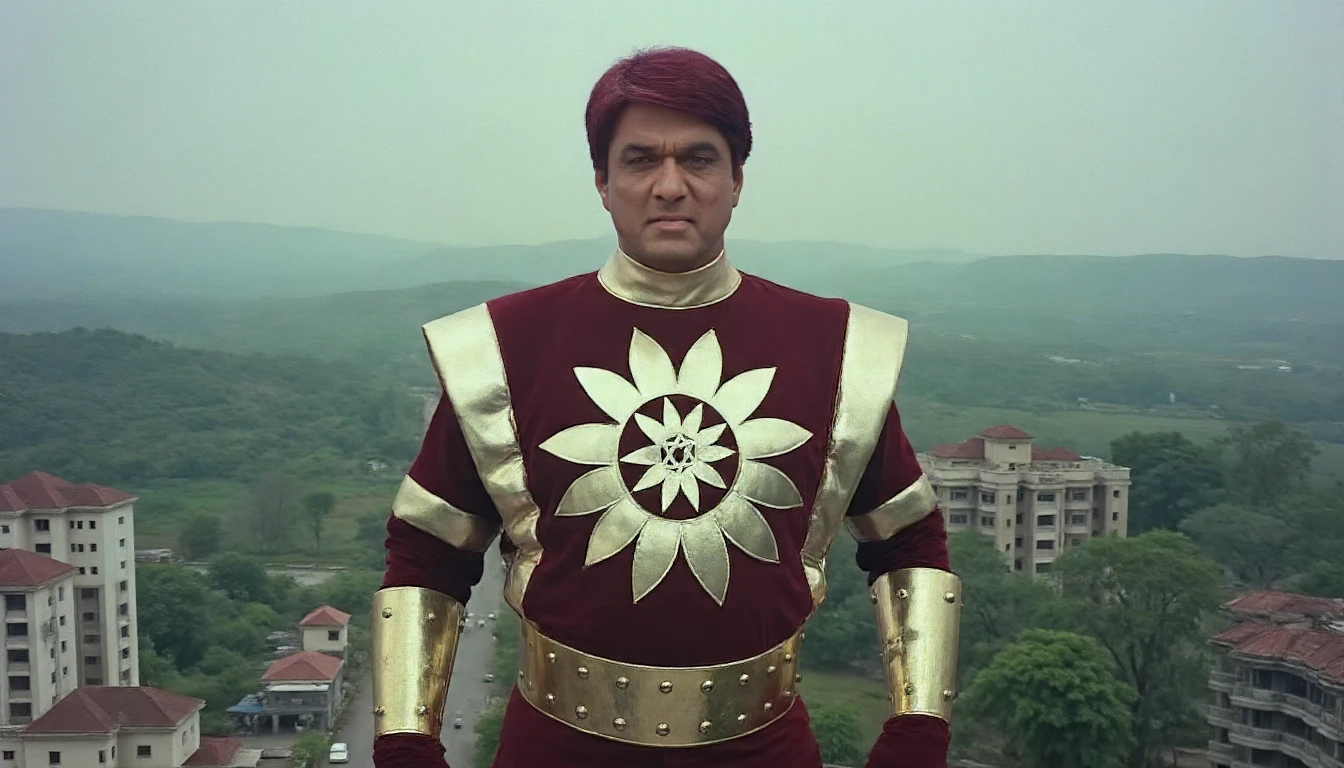 Authentic Shaktimaan Representation: Generate Shaktimaan’s iconic maroon and gold costume with the chakra symbol on his chest and his heroic demeanor.