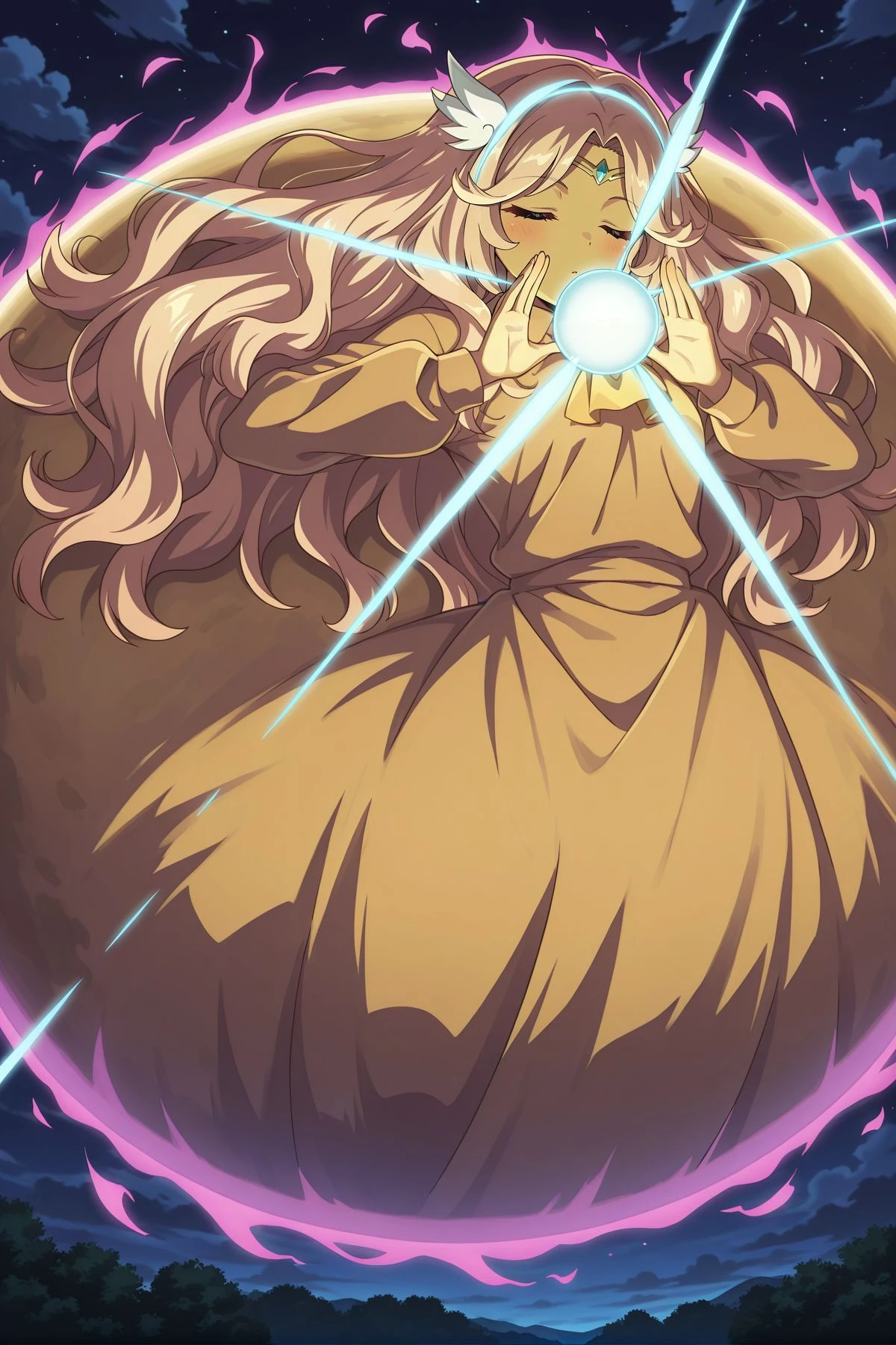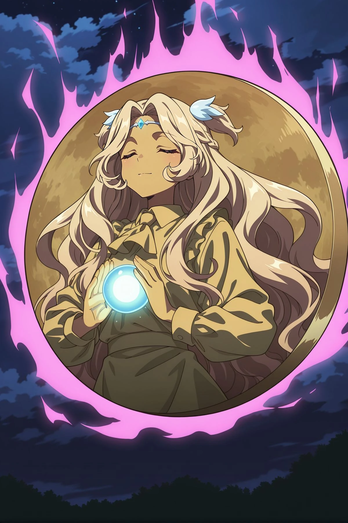 holding orb, circle, aura,