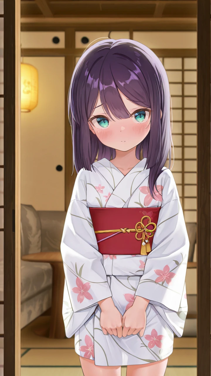 如果你在Positive prompt添加:hair down,将切换成她洗澡或睡觉时的造型。