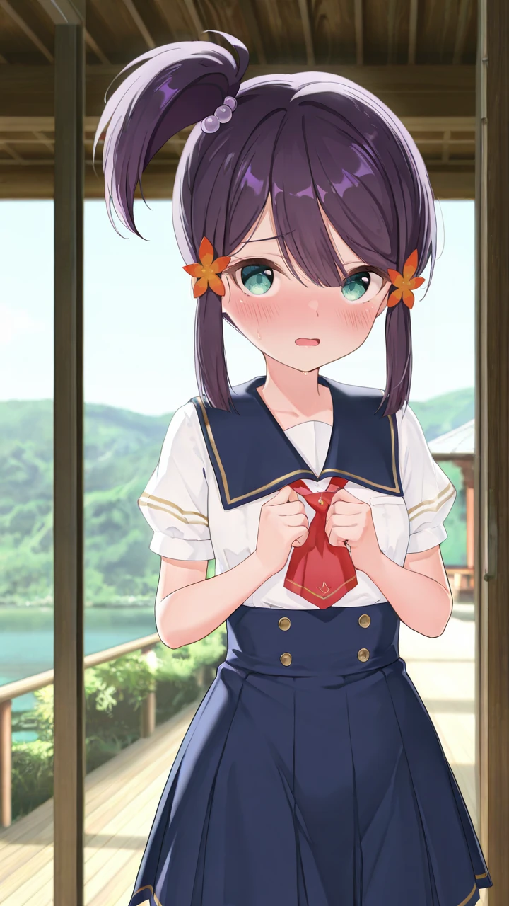 在多数时候,你需要使用“hair ornament”或“leaf hair ornament”来还原她的枫叶发饰。