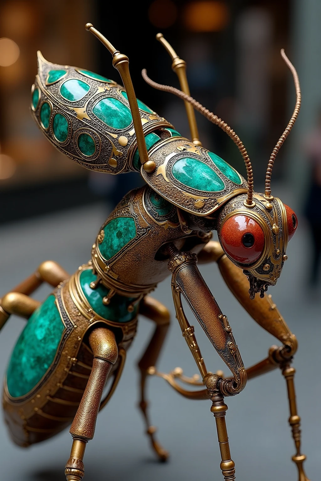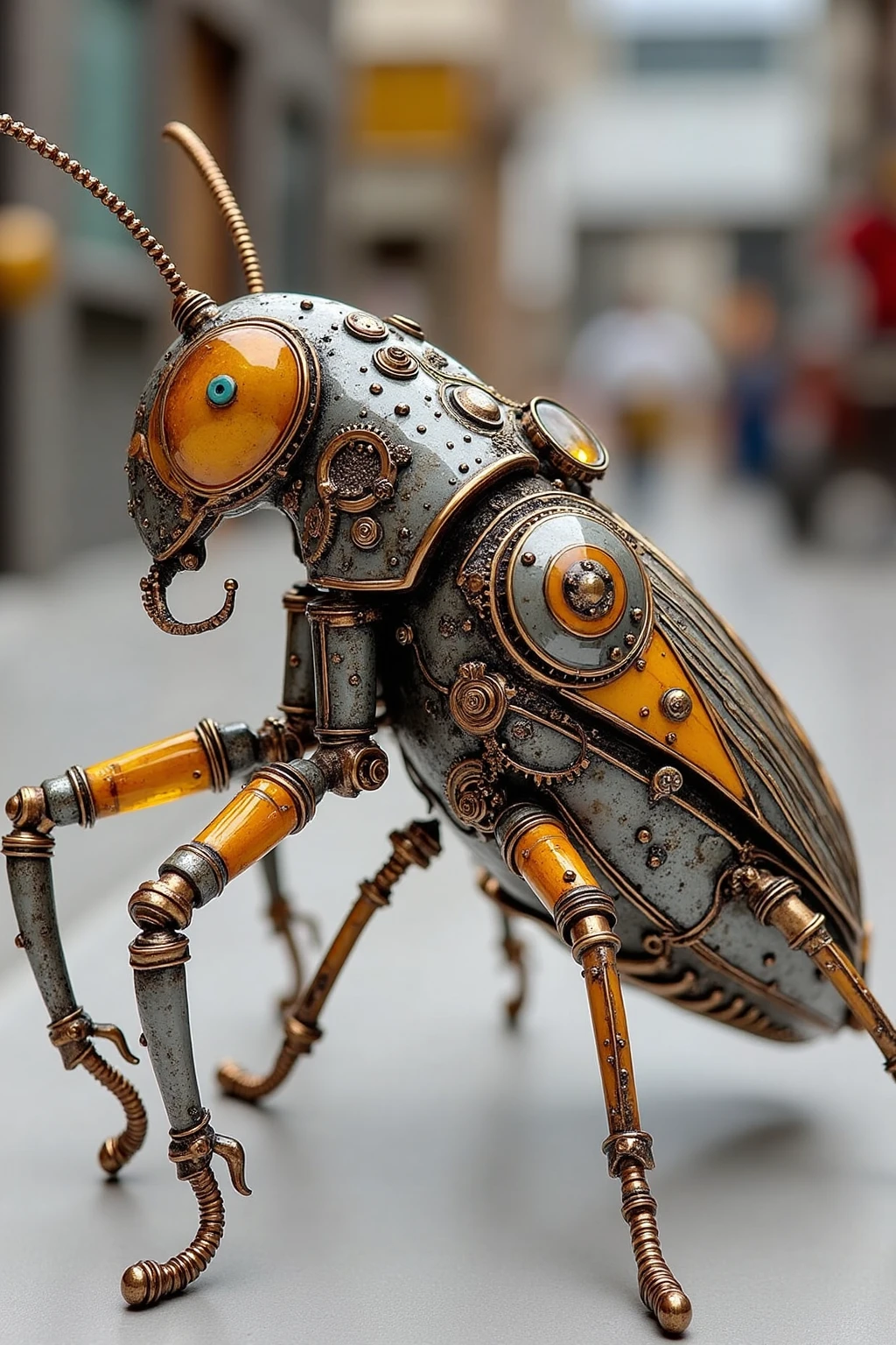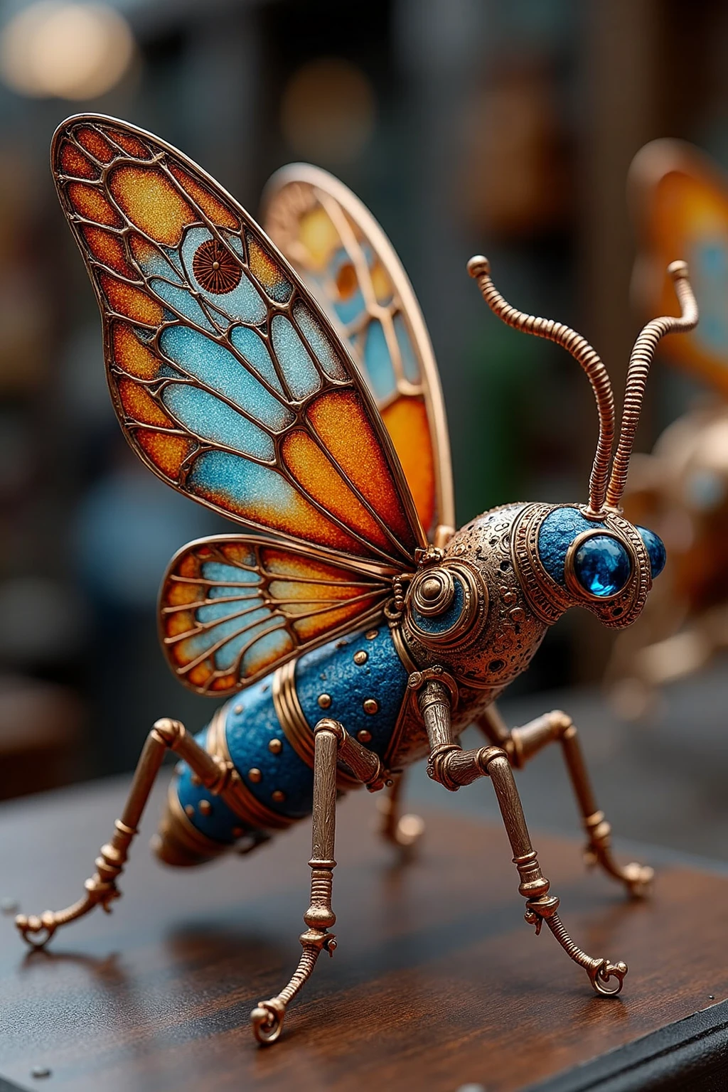 Base Prompt:Steampunk - styled insect sculptures