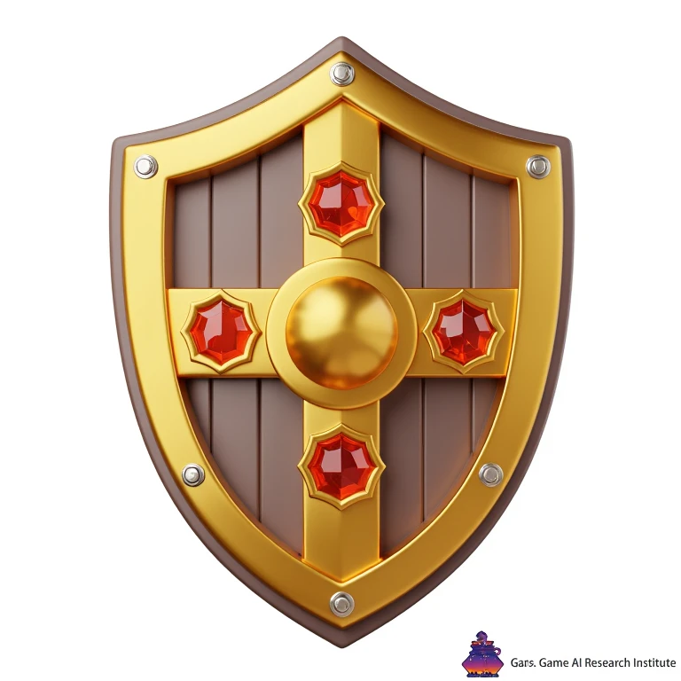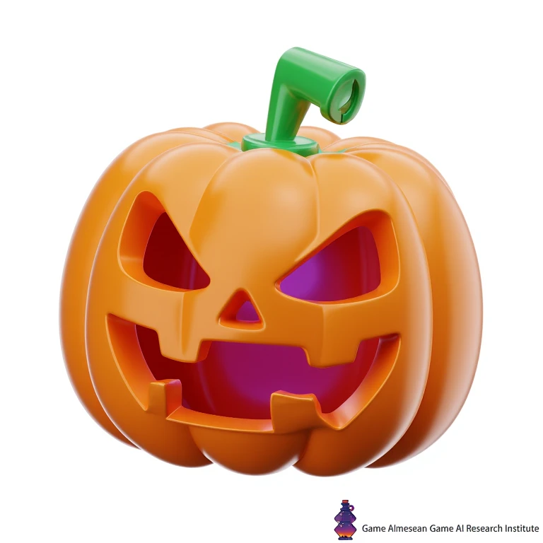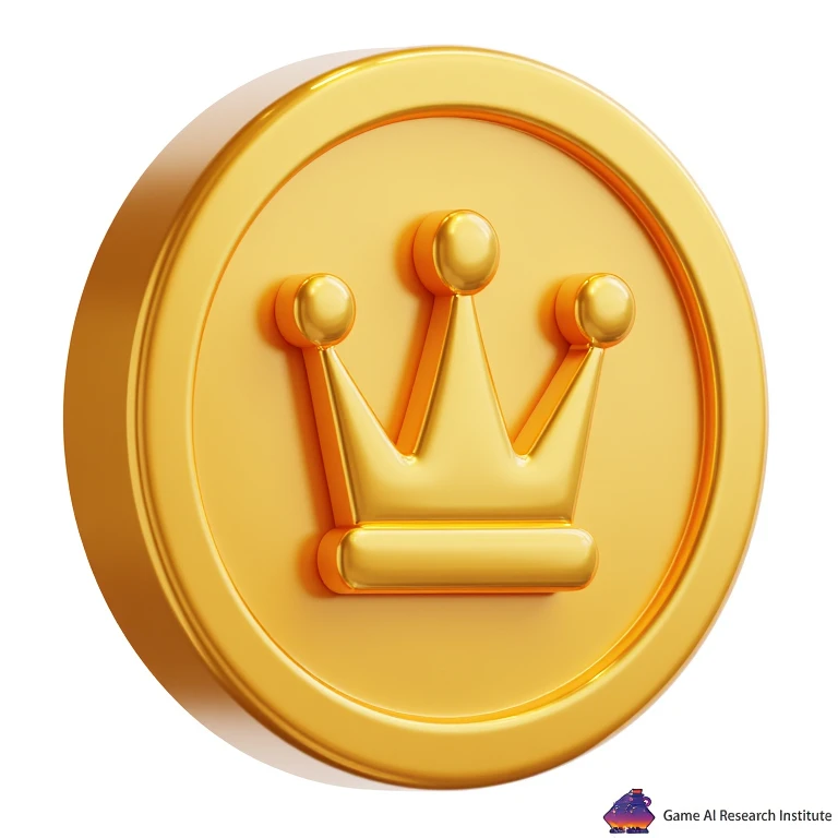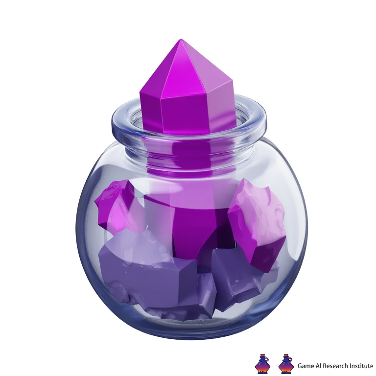 示例:gmic icon_/(3D Textured Realism/), The image shows a purple wizard hat with a wide brim adorned with blue and orange decorative elements. The hat has a large shiny gold-colored gemstone in the center which is the focal point of the design. The hat is depicted in a 3D style giving it a smooth and slightly glossy appearance. The background is plain white which makes the hat stand out clearly. In the bottom right corner there is a logo that reads "Game AI Research Institute" with a small stylized character that appears to be a wizard., White background,Cartoon icon, realistic material