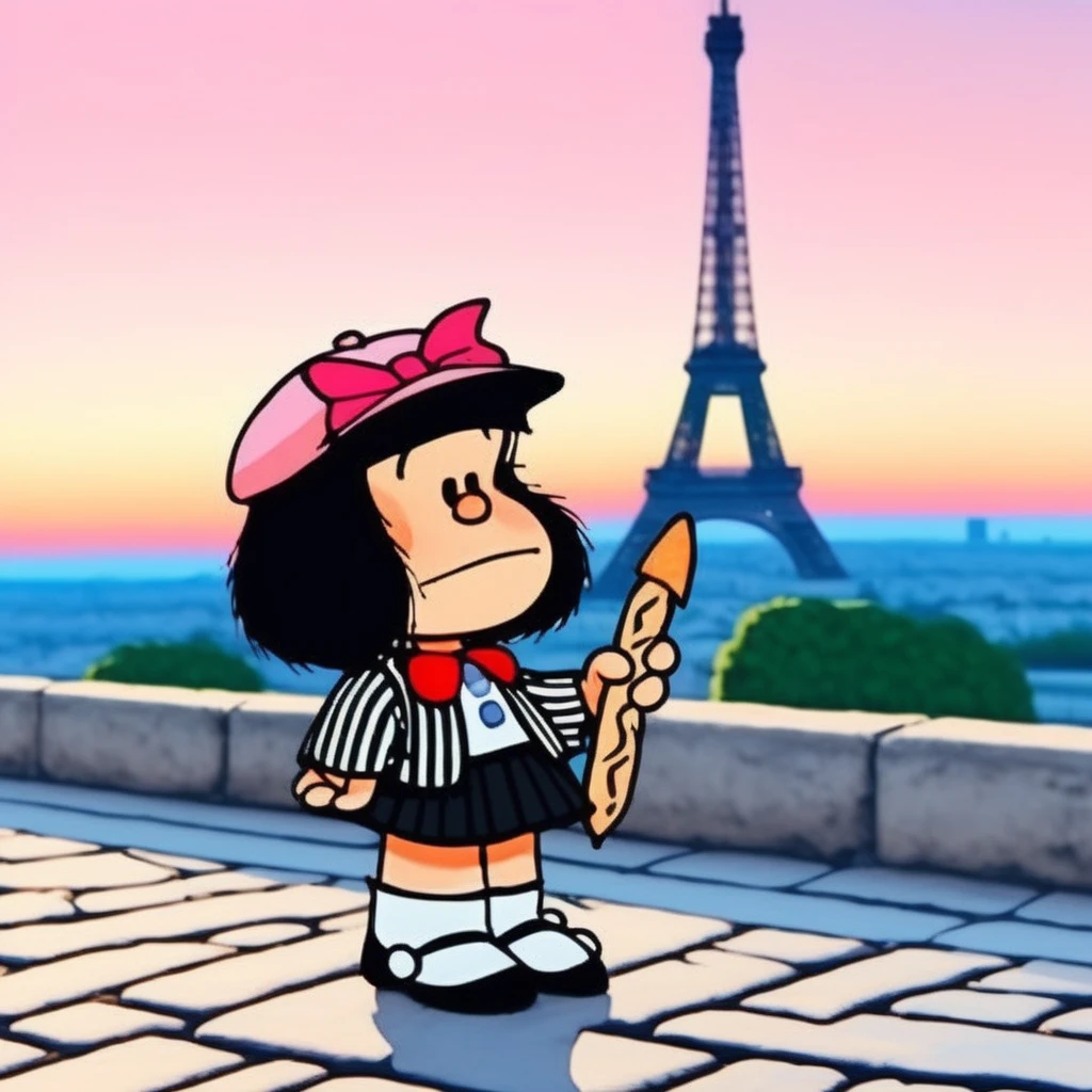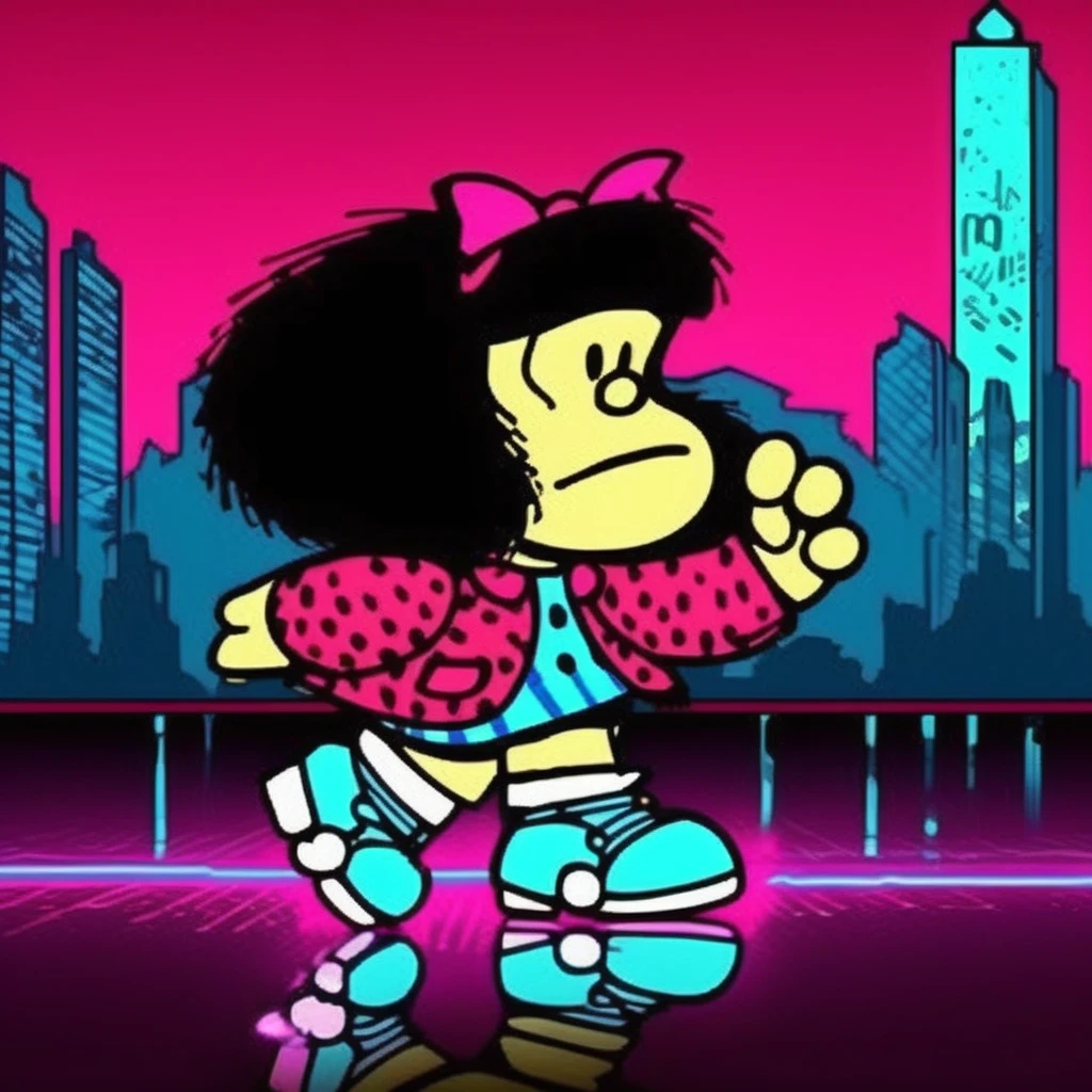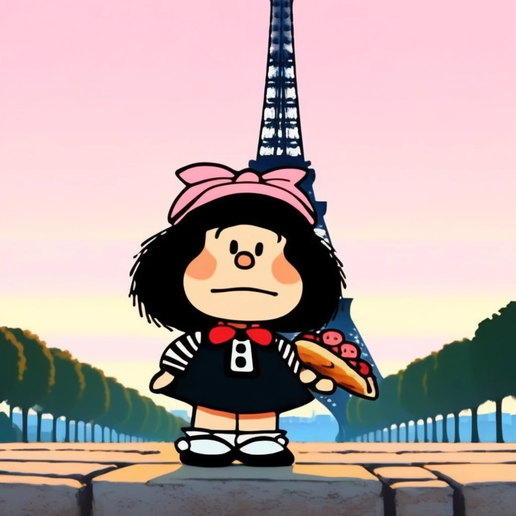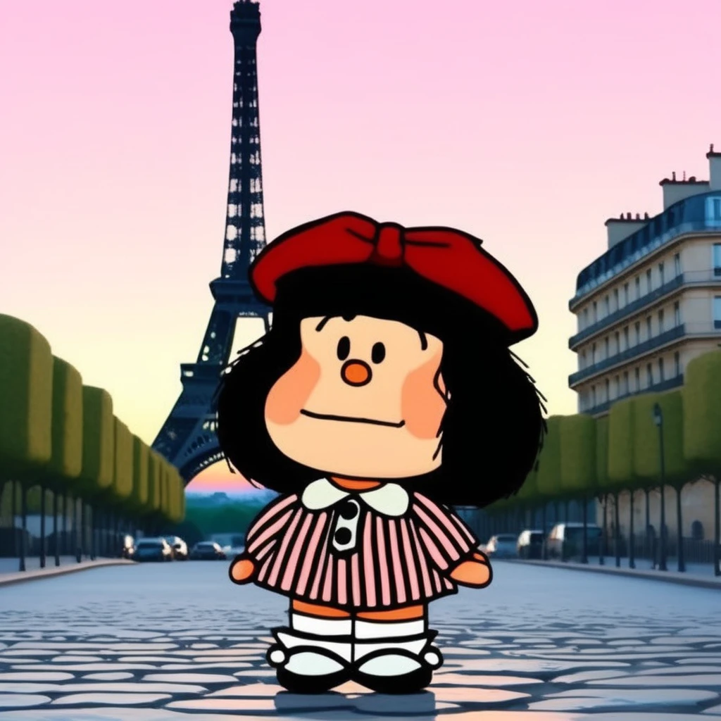 Personality: She is curious, intelligent, and often questions the world around her. Mafalda is known for her critical view of society, politics, and adult behavior. Despite her age, she has a deep sense of social justice and often expresses concern about world peace and human rights.