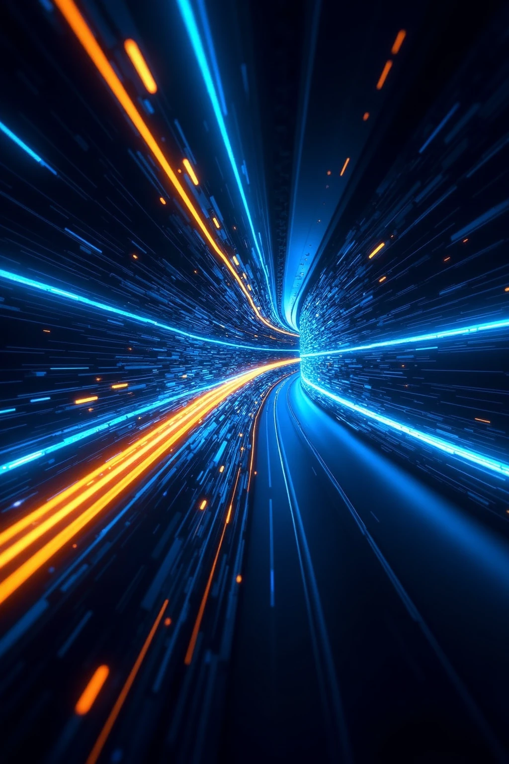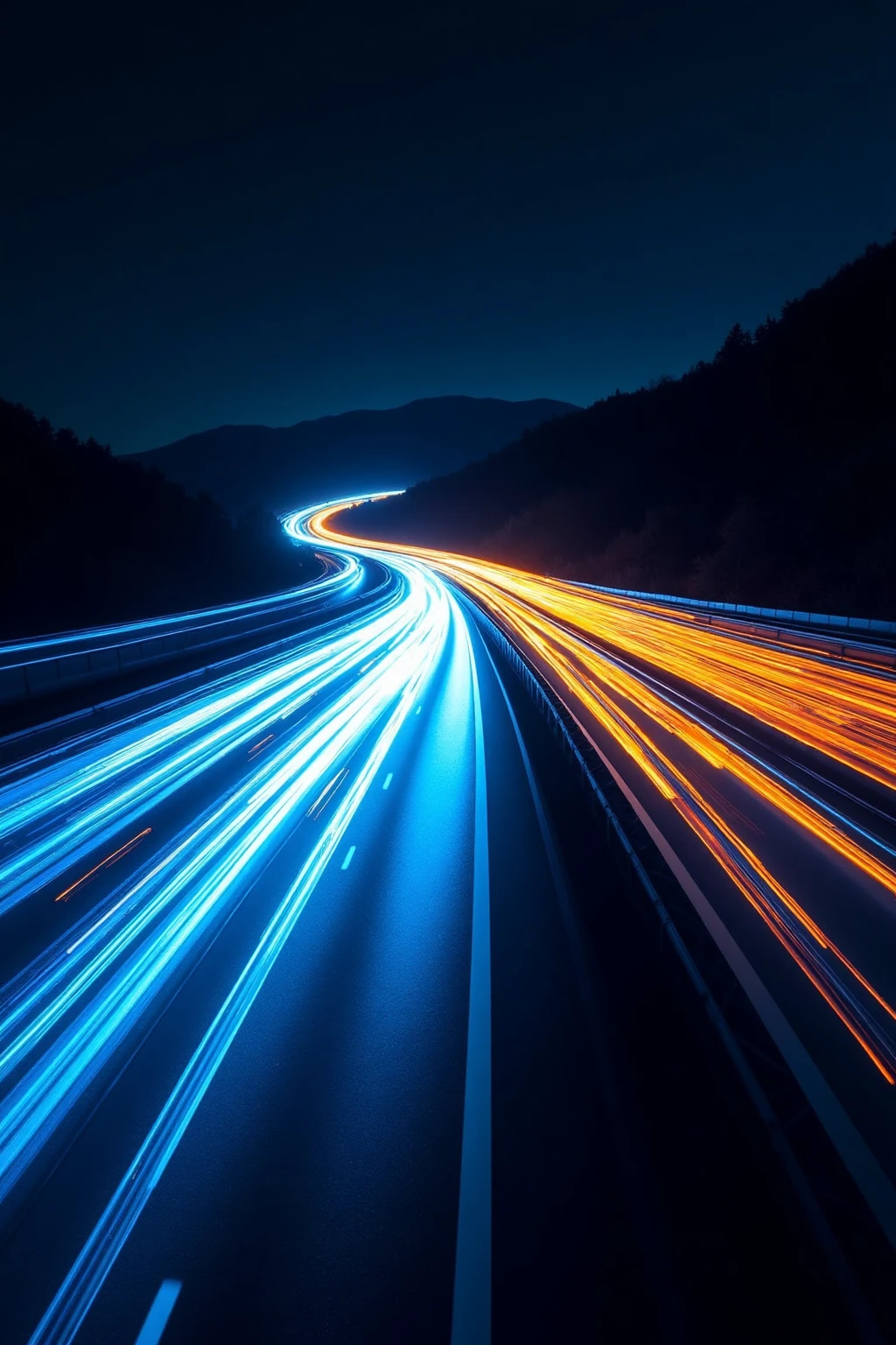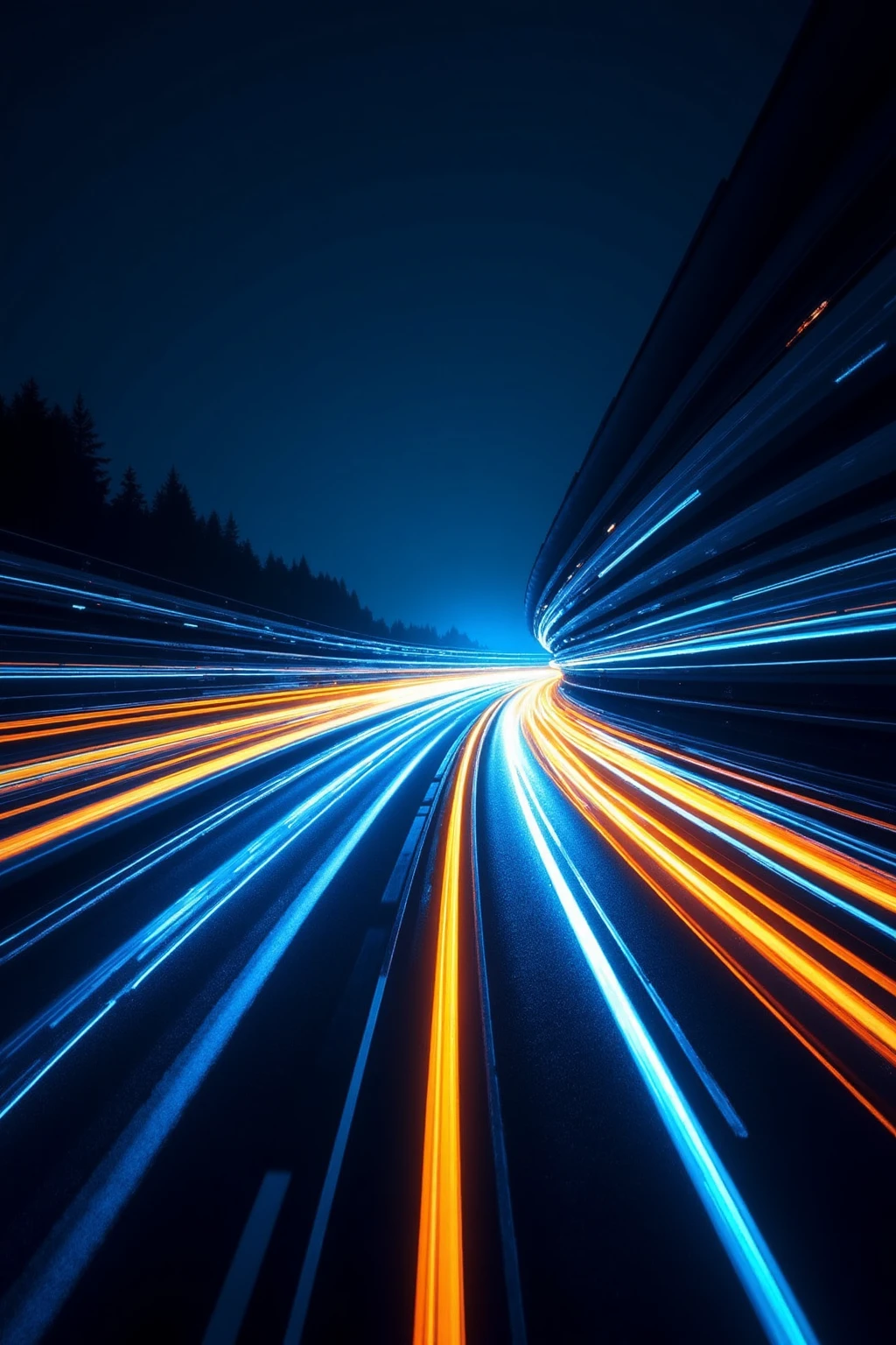 Base Prompt:Dynamic light trails and blue - orange color schemes