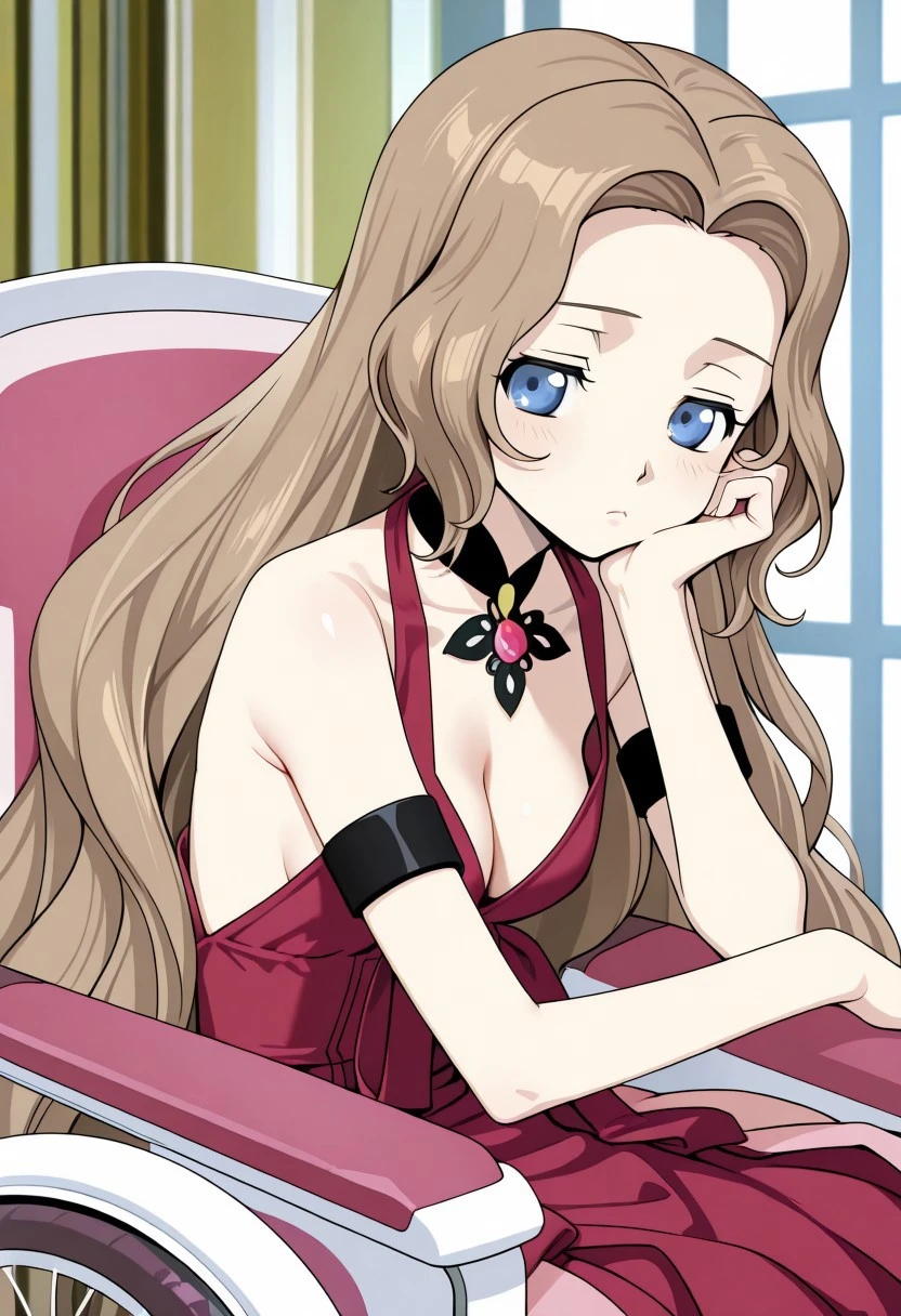 long sleeves, dress, school uniform, necktie, red necktie, ashford academy school uniform, wheelchair,