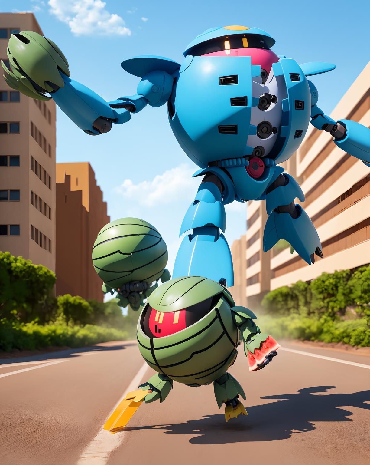 The main trigger word "mecha" suggests that the weight is lower than 0.9, and a 2.5D and 2D painting style fusion monster model is used for training.
