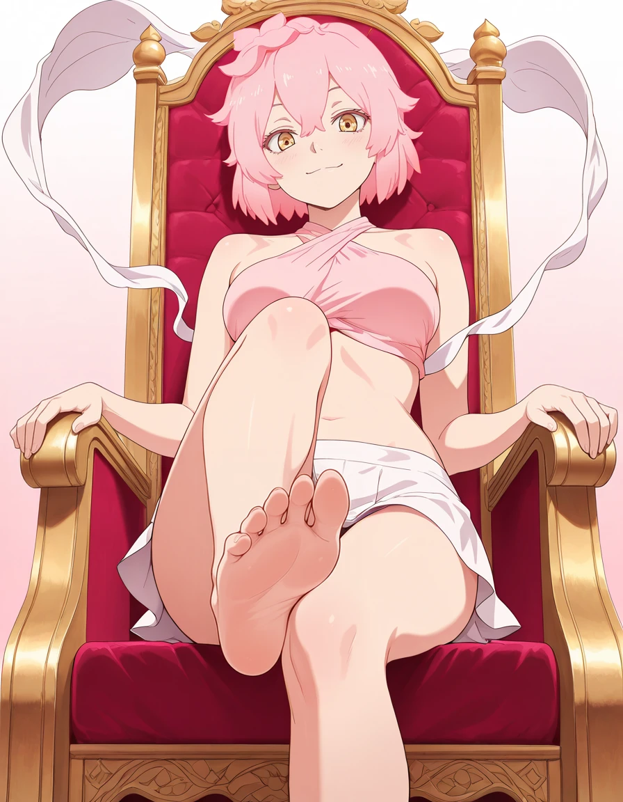 <lora:tao_fa-jigokuraku_s2-ixl-anime-soralz:1>, tao fa (jigokuraku), short hair, pink hair, fluffy hair, hair between eyes, yellow eyesOutfit - Bikini