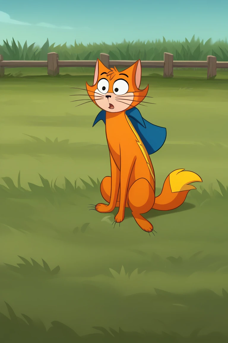 Trained tags: streakythesupercat, only this one required but cape, whiskers may help.