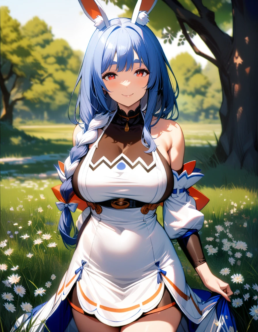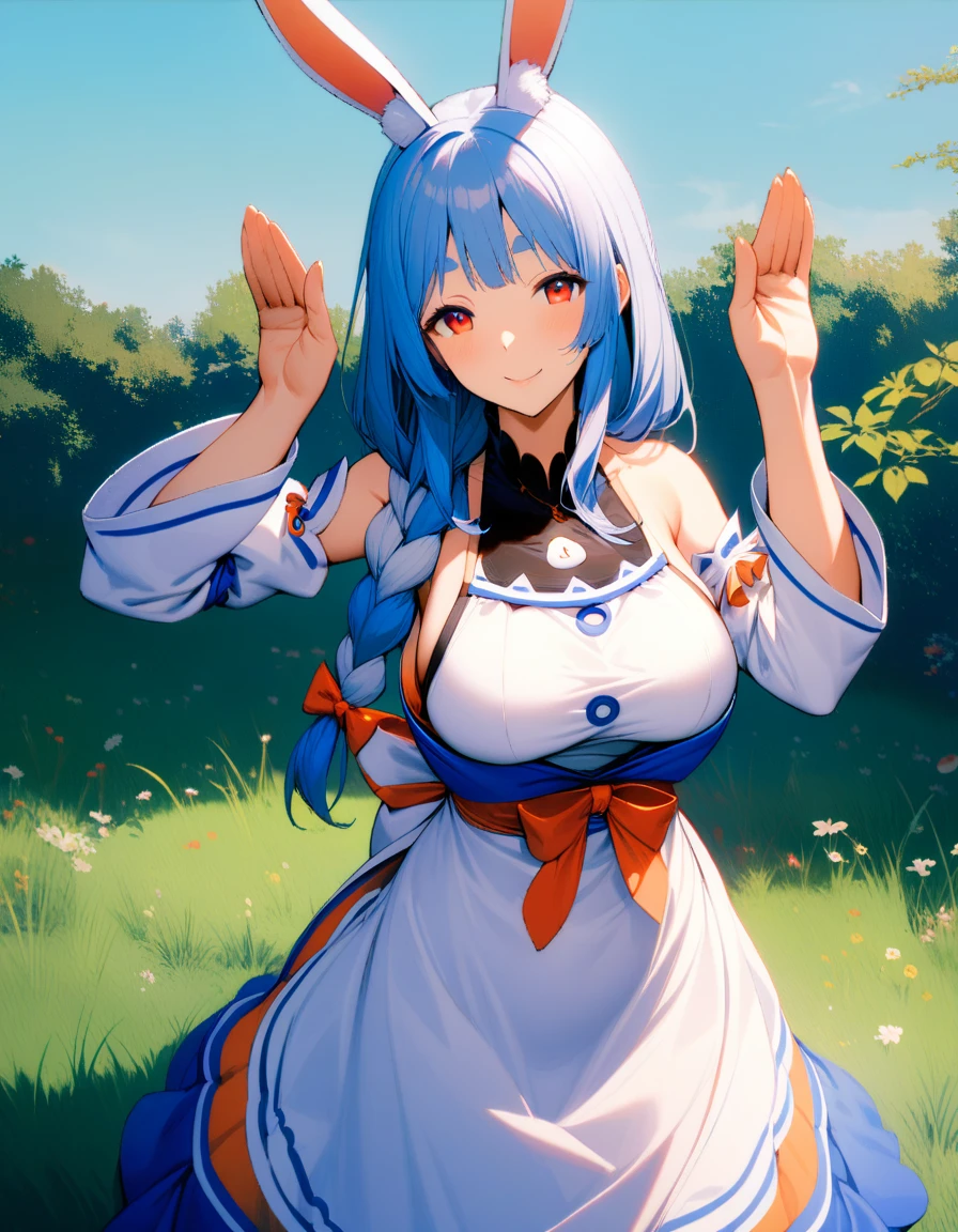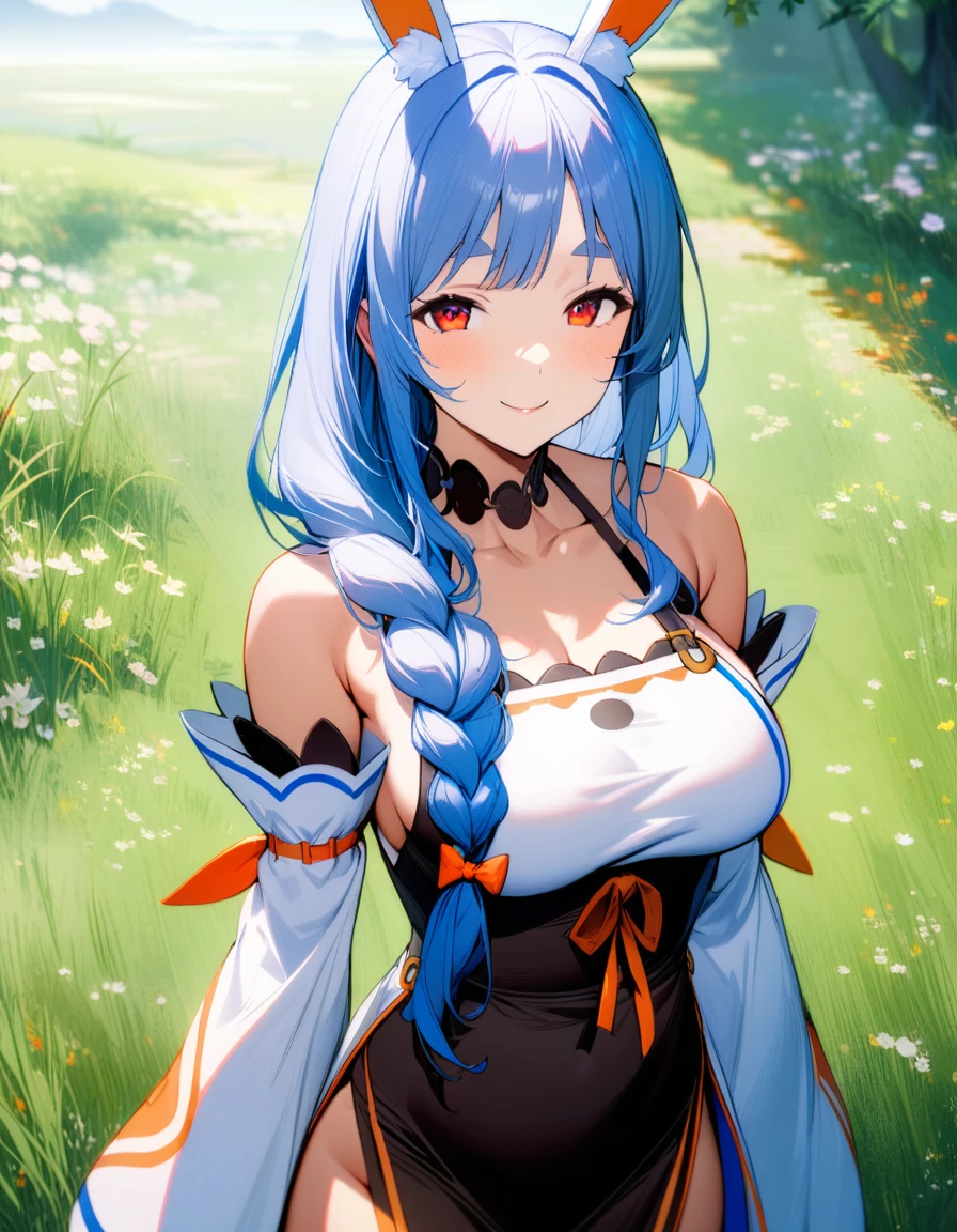 1girl, pekomama, solo, long hair, smile, mature female, red eyes, (very aethetic, best quality, ultra detailed), intricate details.Weight Recommend: 0.7-1