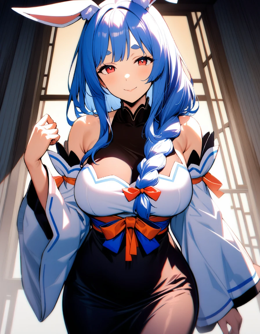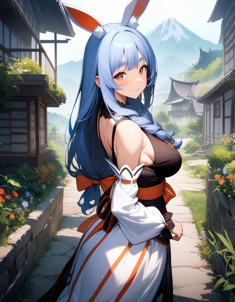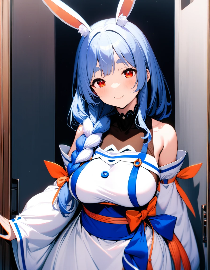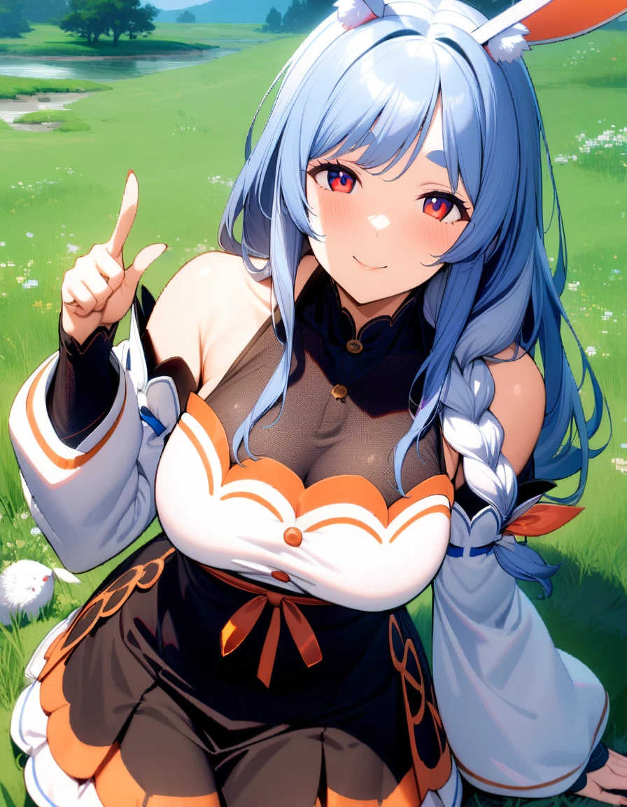1girl, pekomama, solo, long hair, smile, mature female, red eyes, (very aethetic, best quality, ultra detailed), intricate details.Weight Recommend: 0.7-1