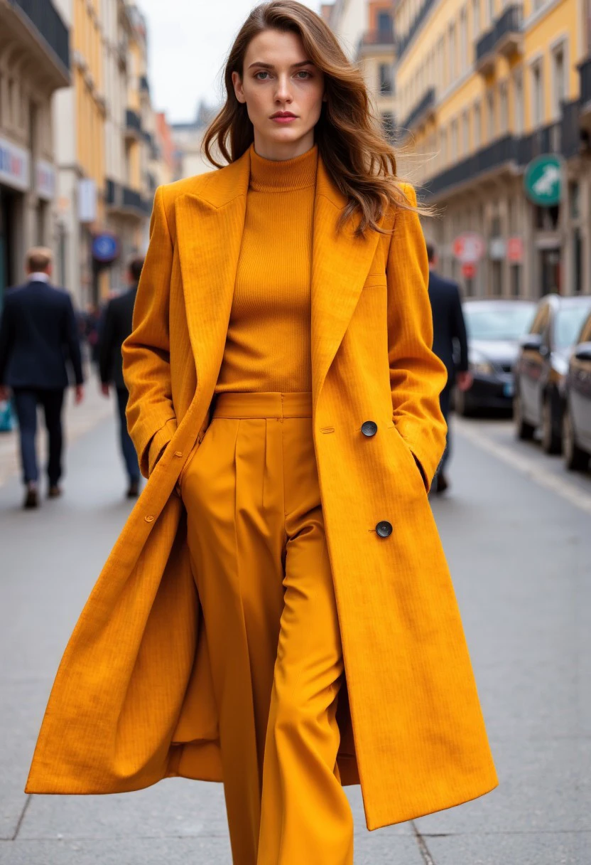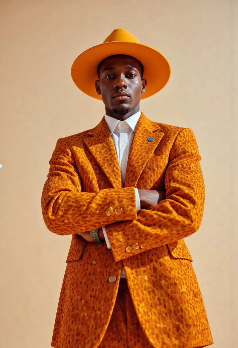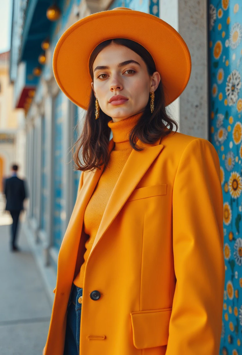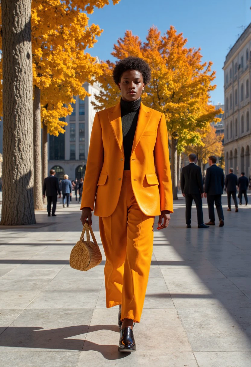 A warm colored fashion style with unique designer clothes and amazing lighting.