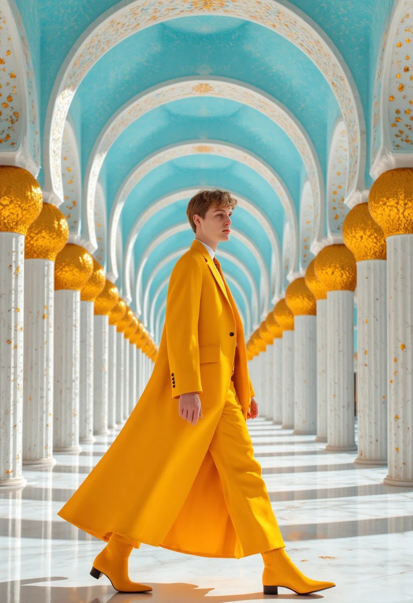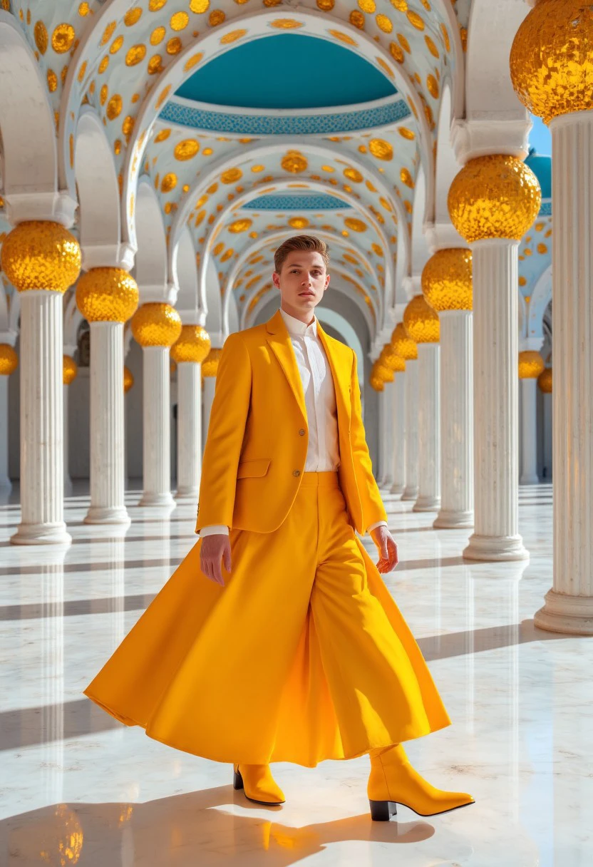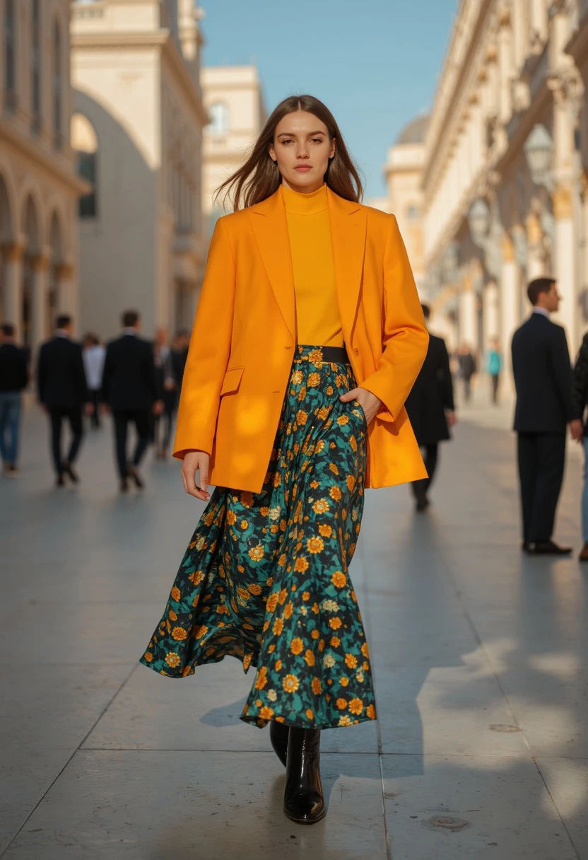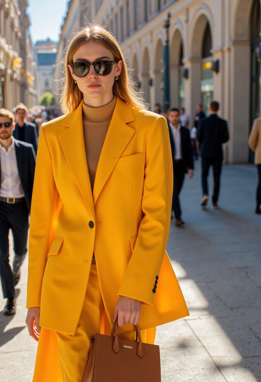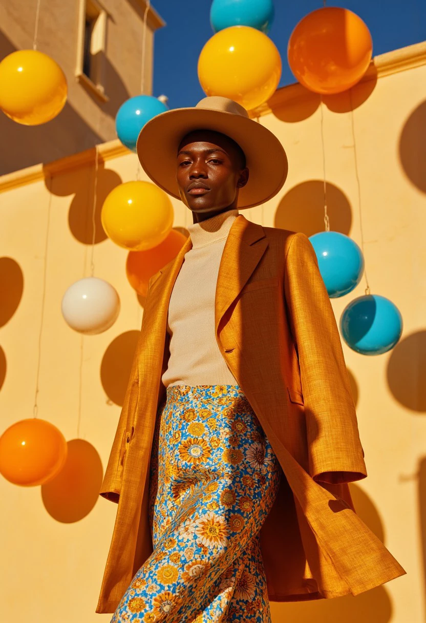 A warm colored fashion style with unique designer clothes and amazing lighting.