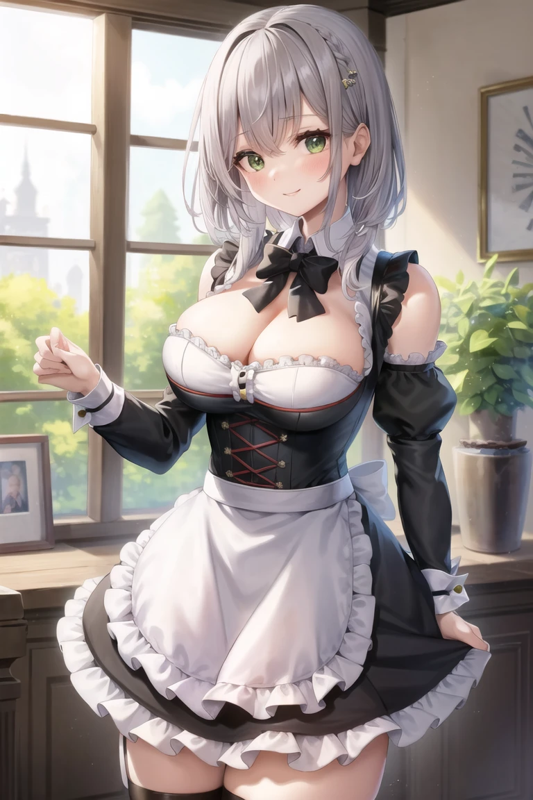 Noel, NoelBeerGirl, german clothes, dirndl, black bowtie, puffy sleeves, detached sleeves, white waist apron, flower, hair ornament, twin braids